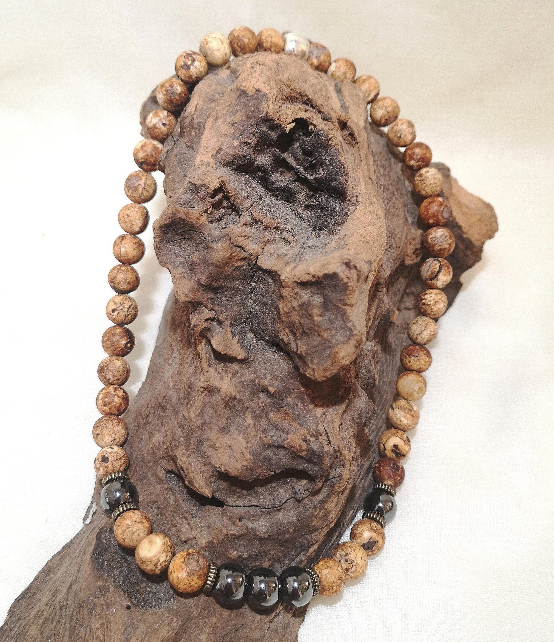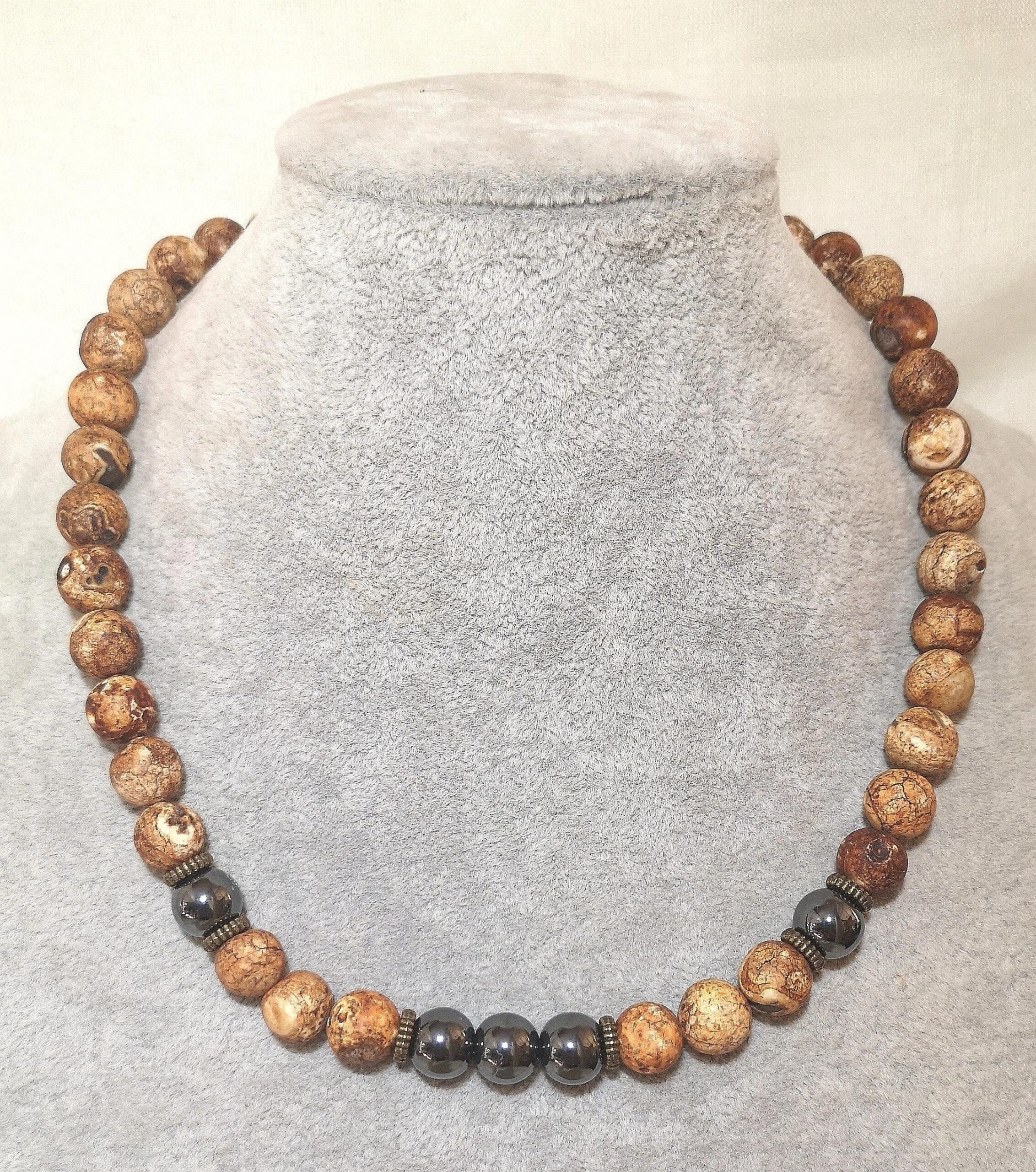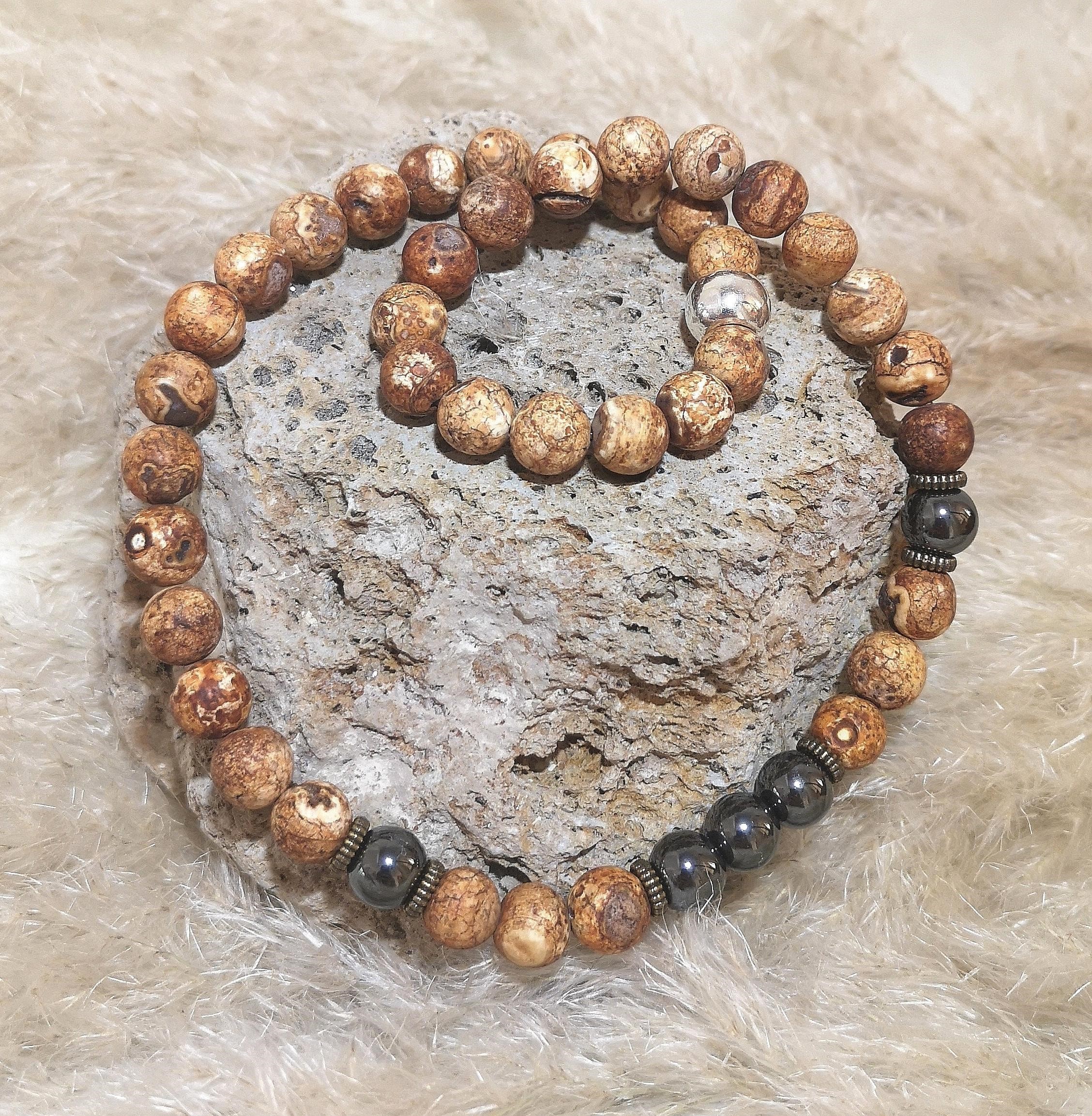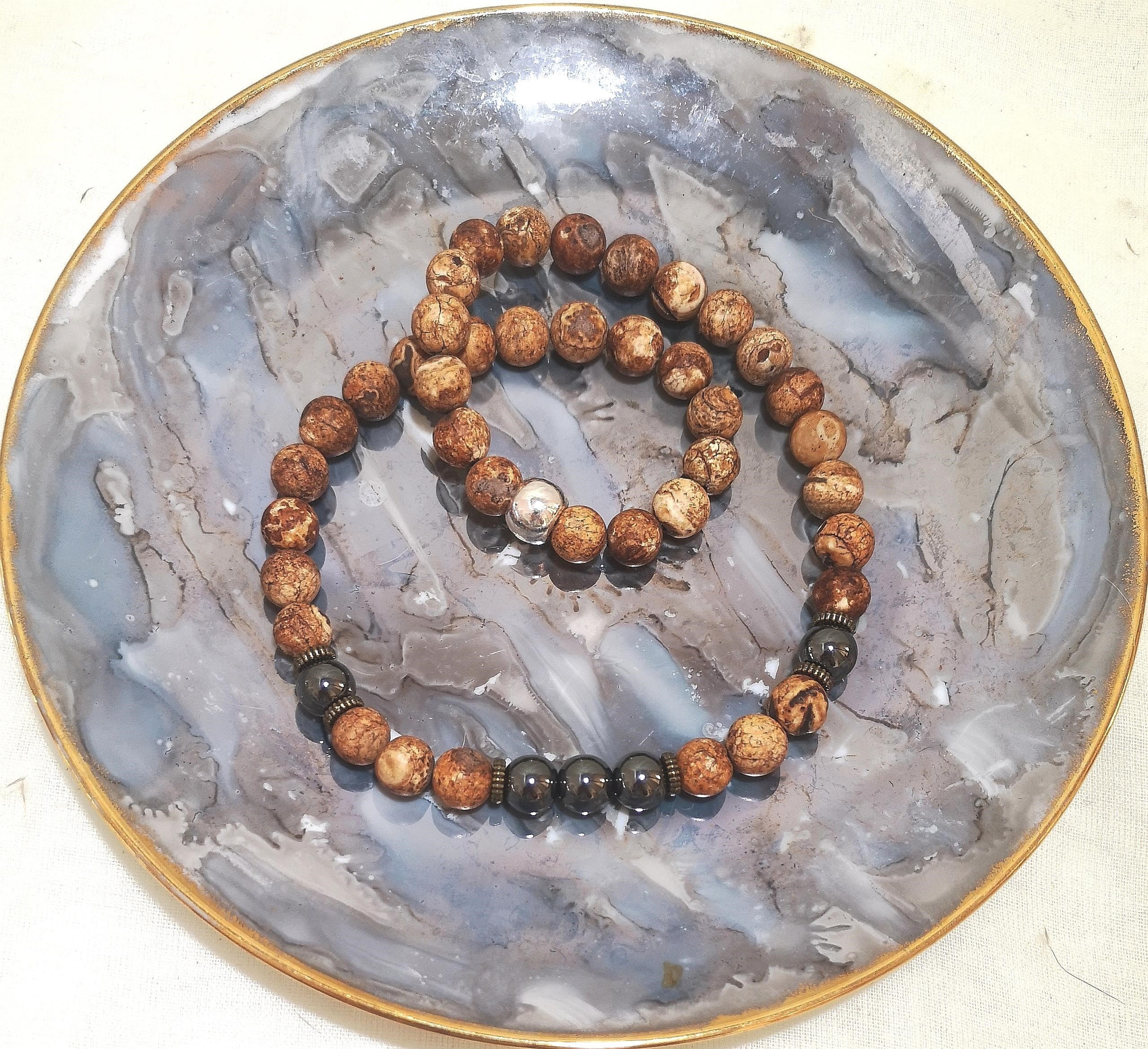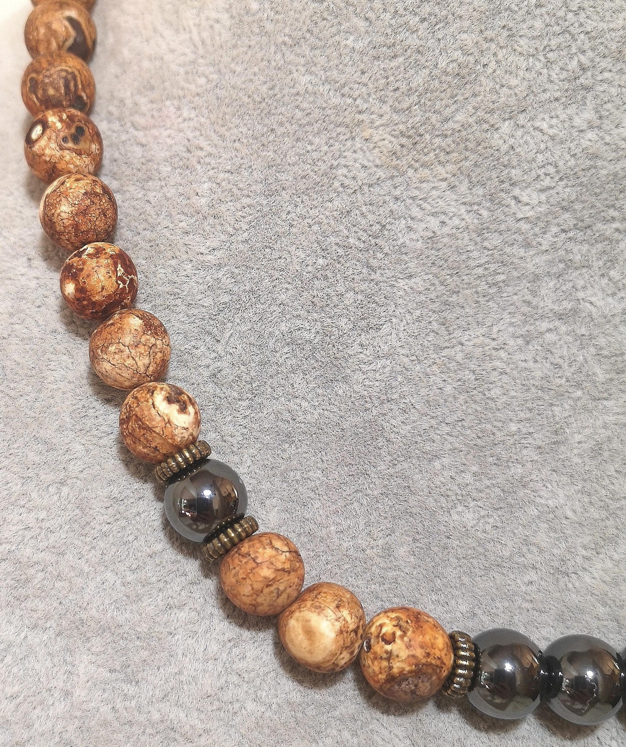 Material: 10 mm goldene tibetische Achat & Hämatit Perlen