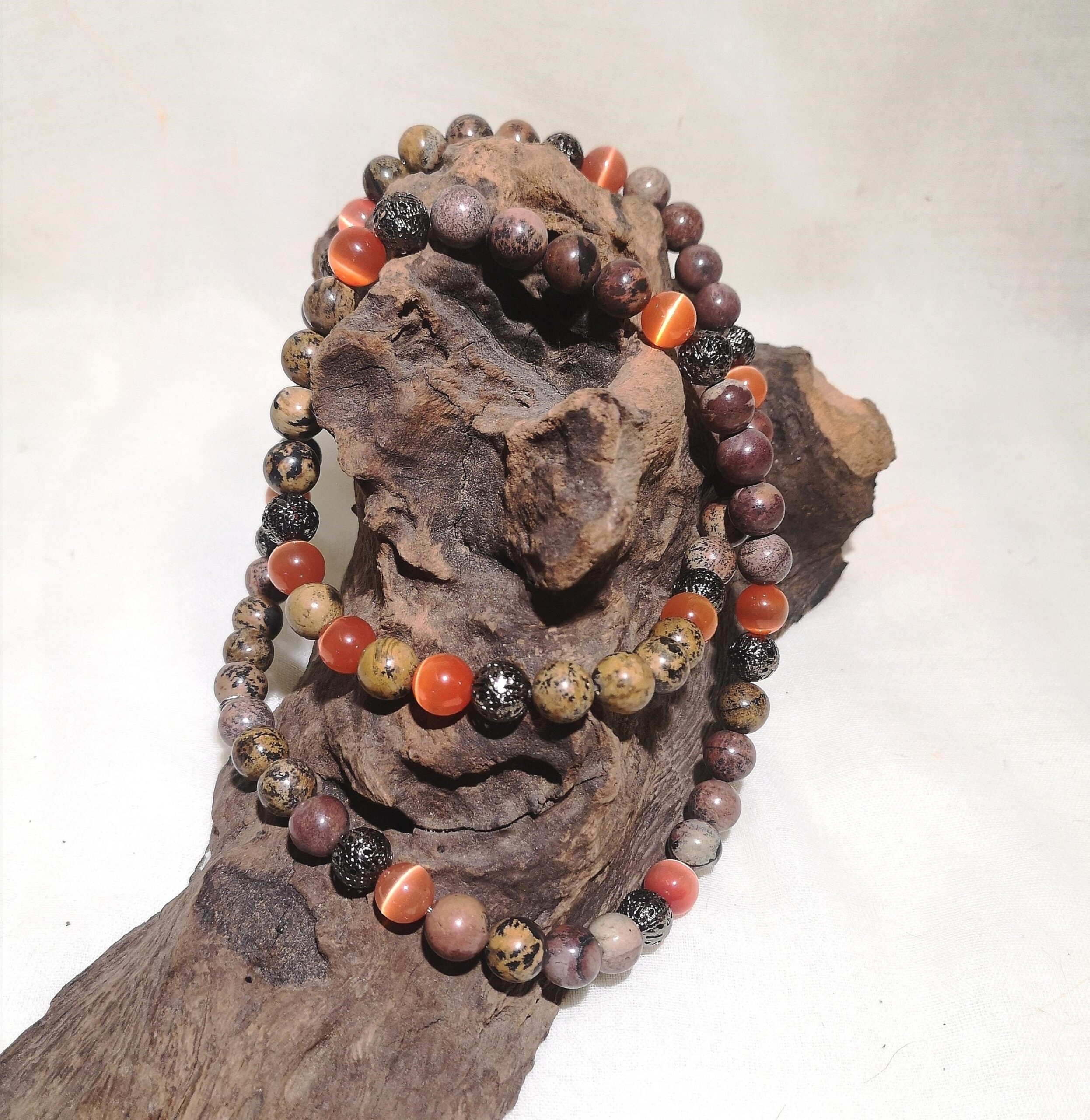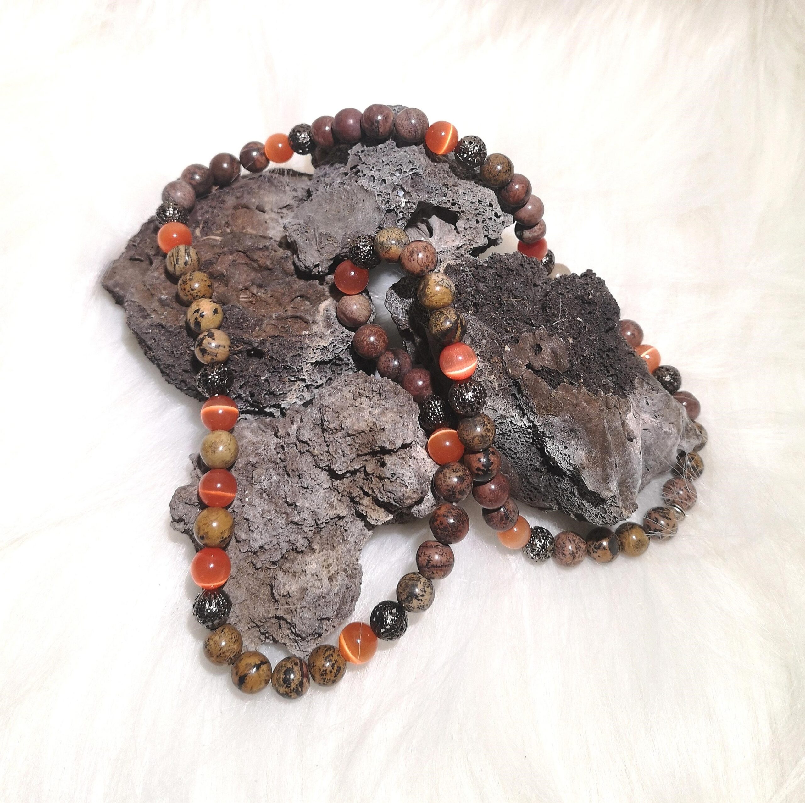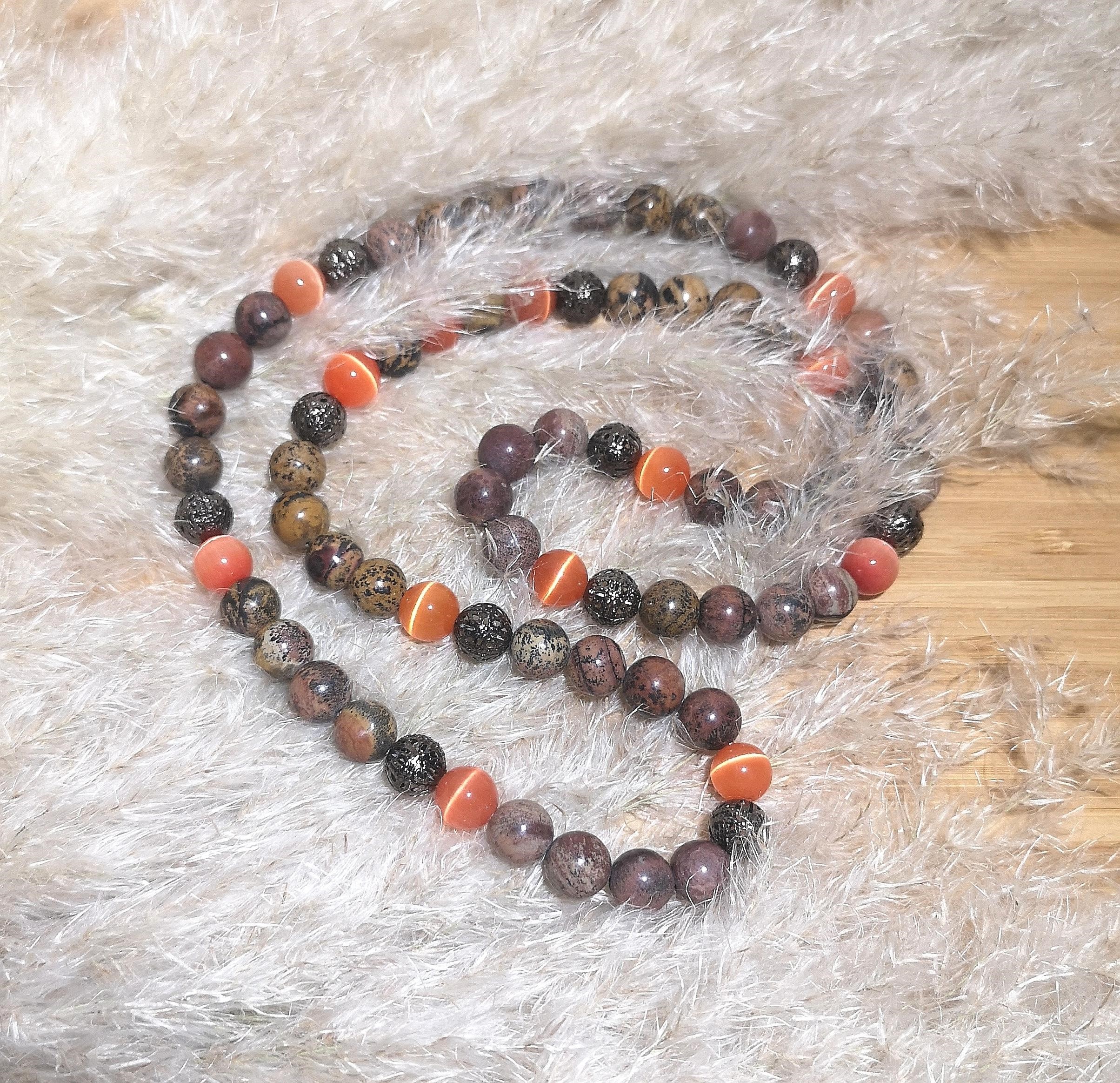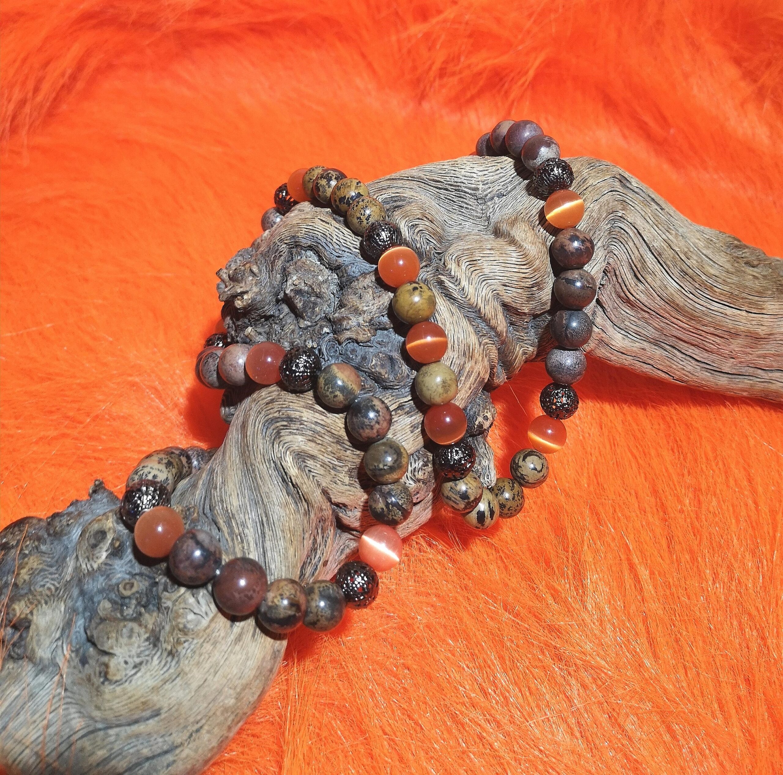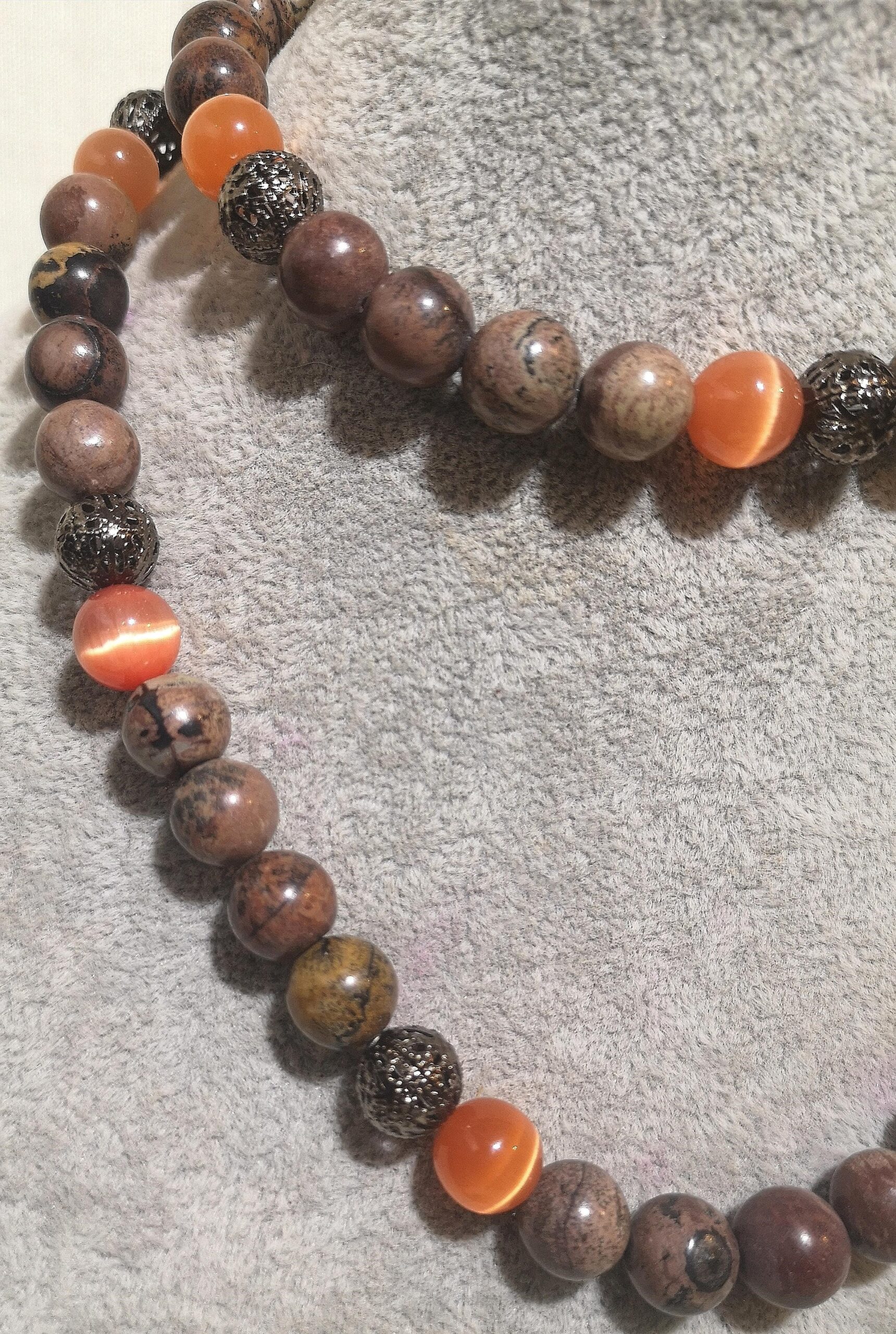 Material: 10 mm Naturstein & orange CatEye Perlen