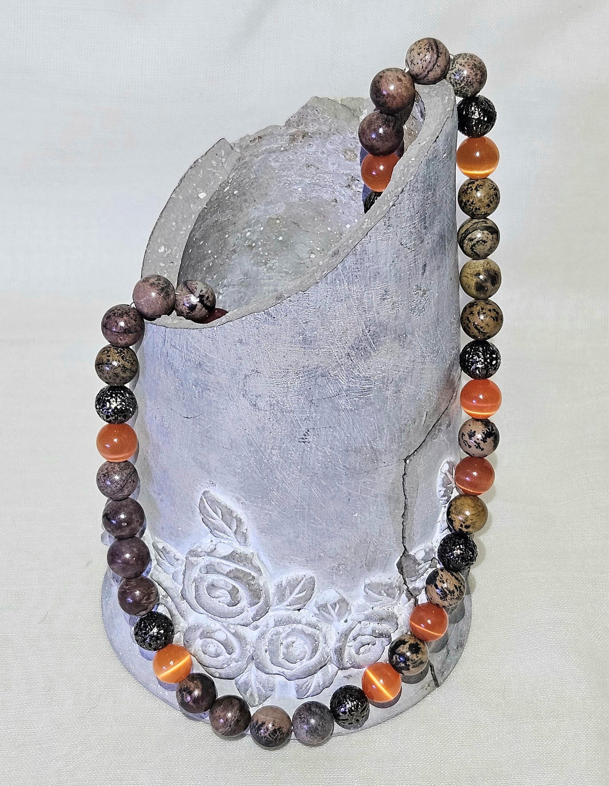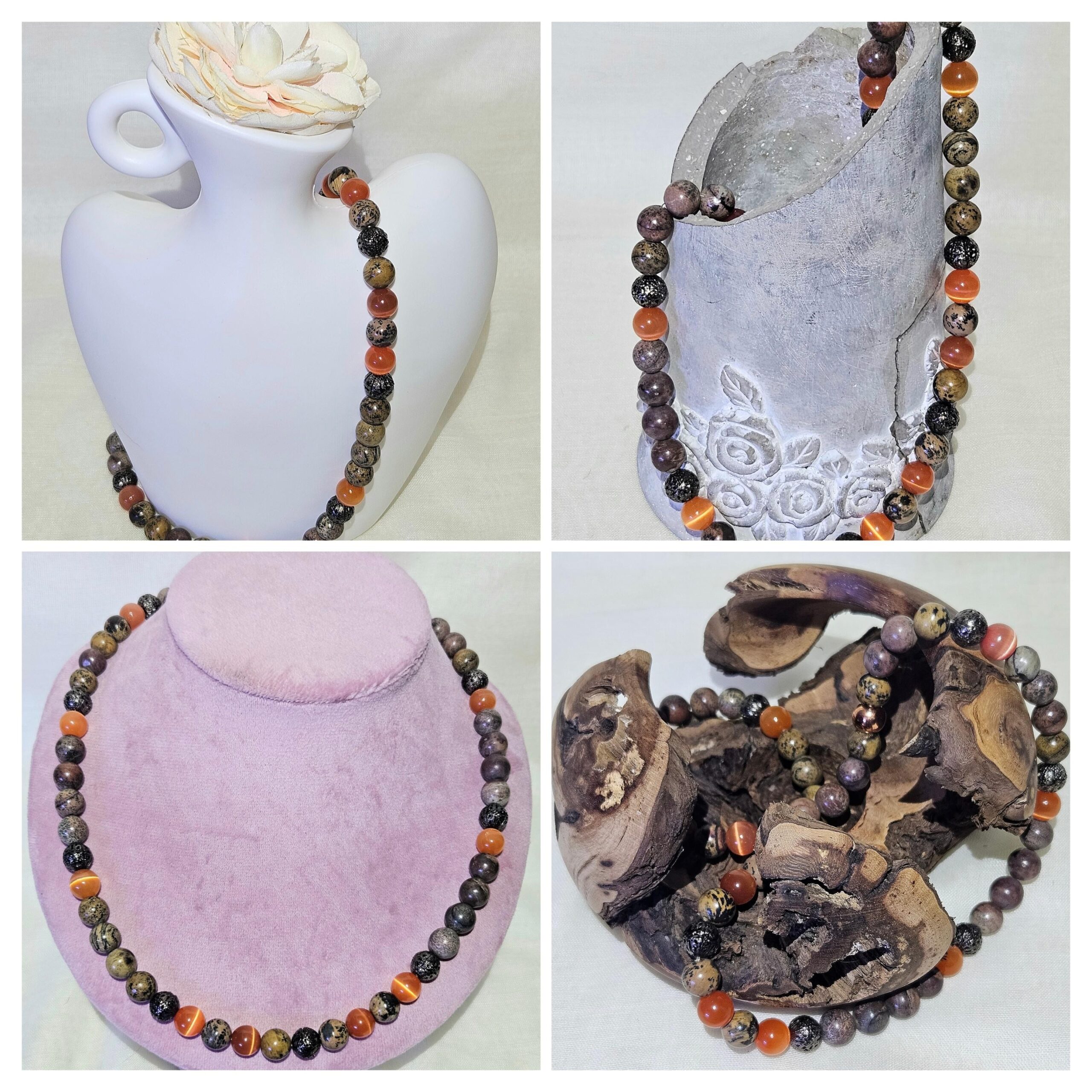 Material: 10 mm Naturstein & orange CatEye Perlen