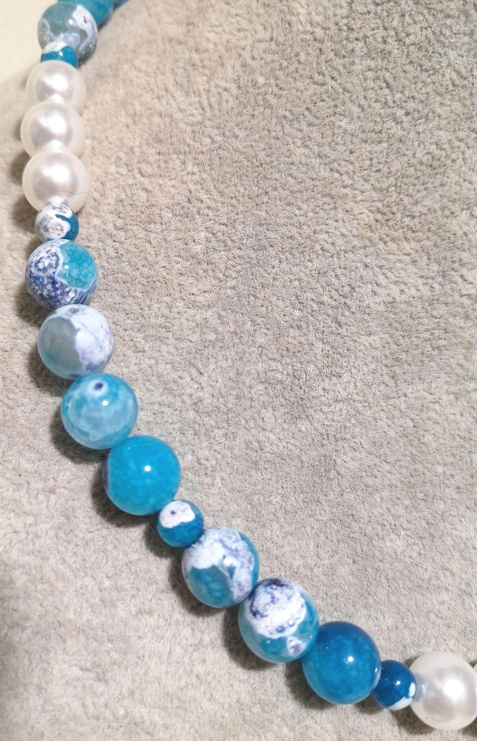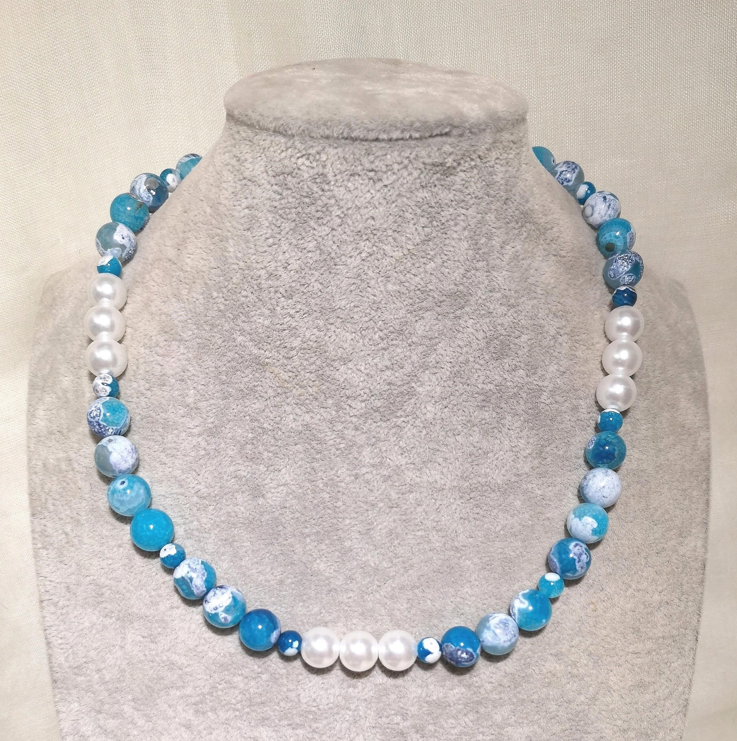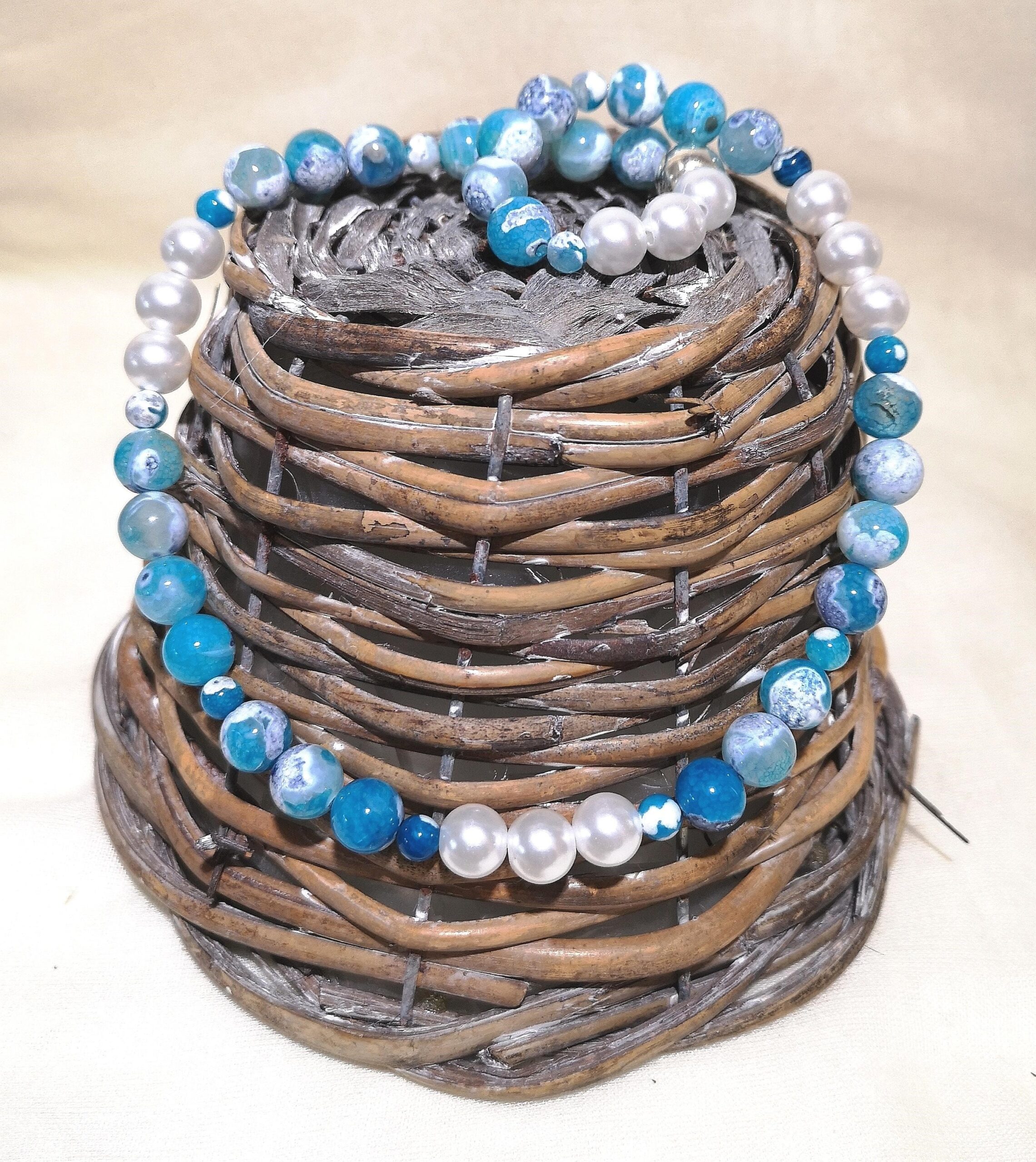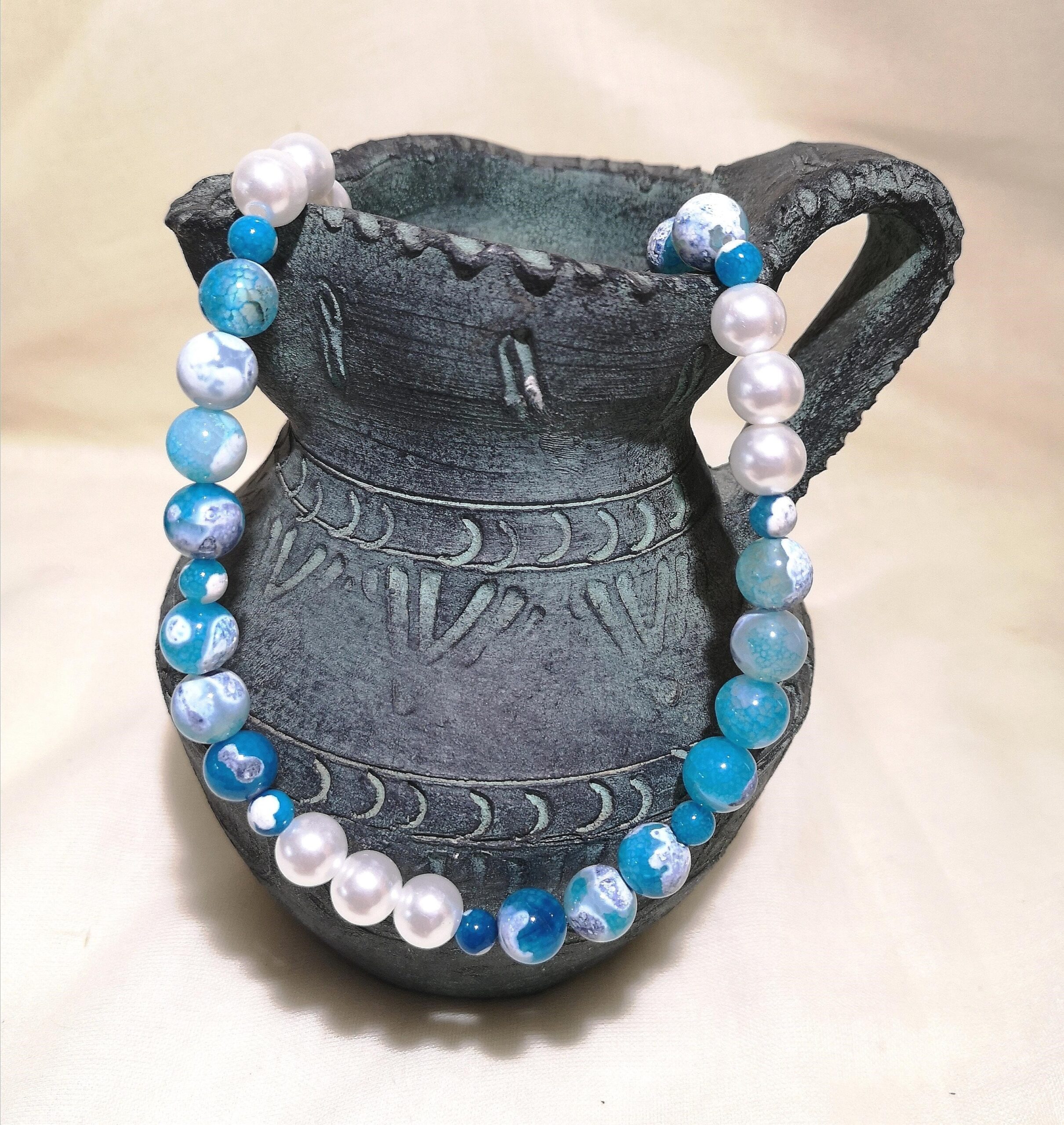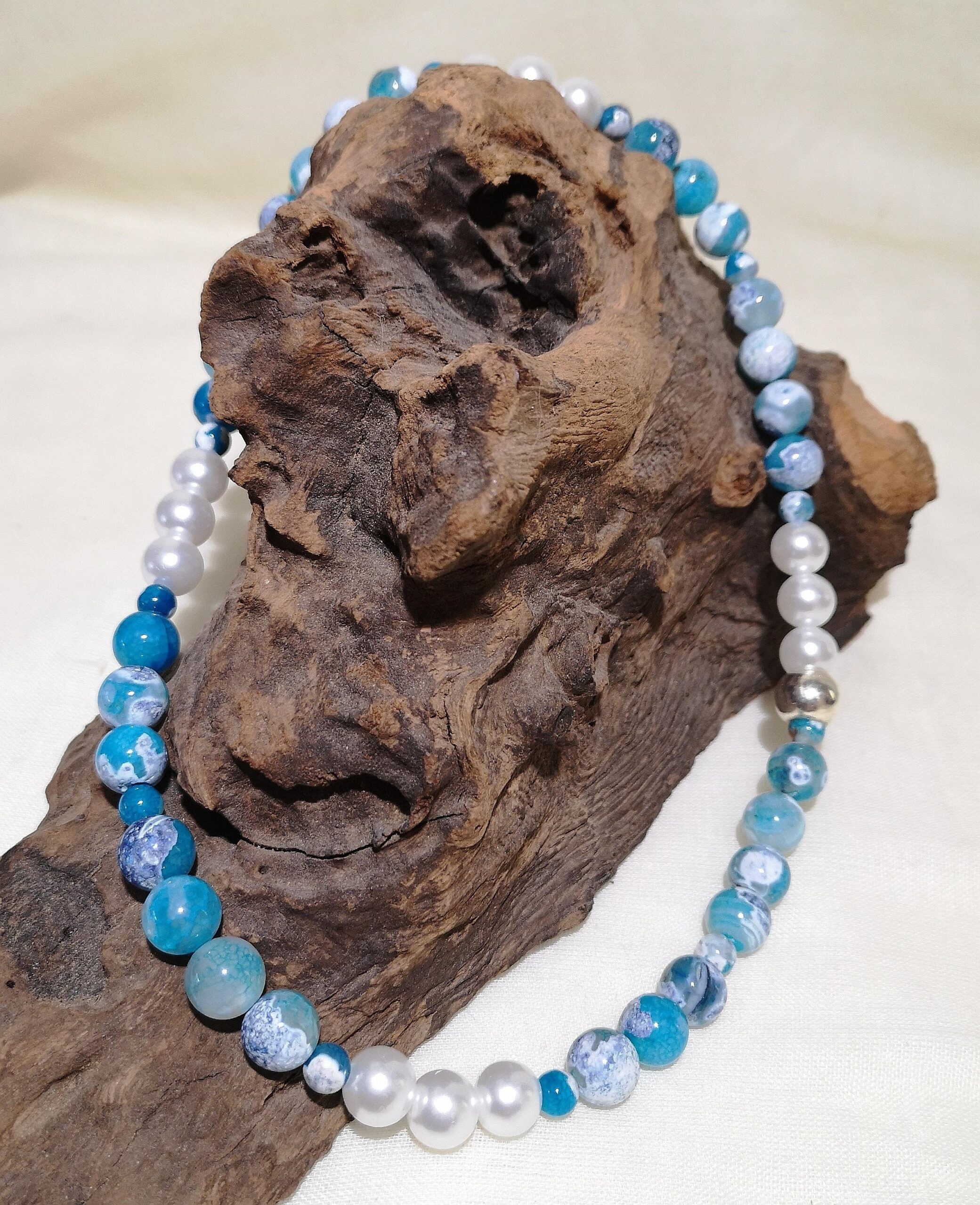 Material: 6+10 mm Blau Feuer Drachen Achat (Imitat) & simulierte Perlen