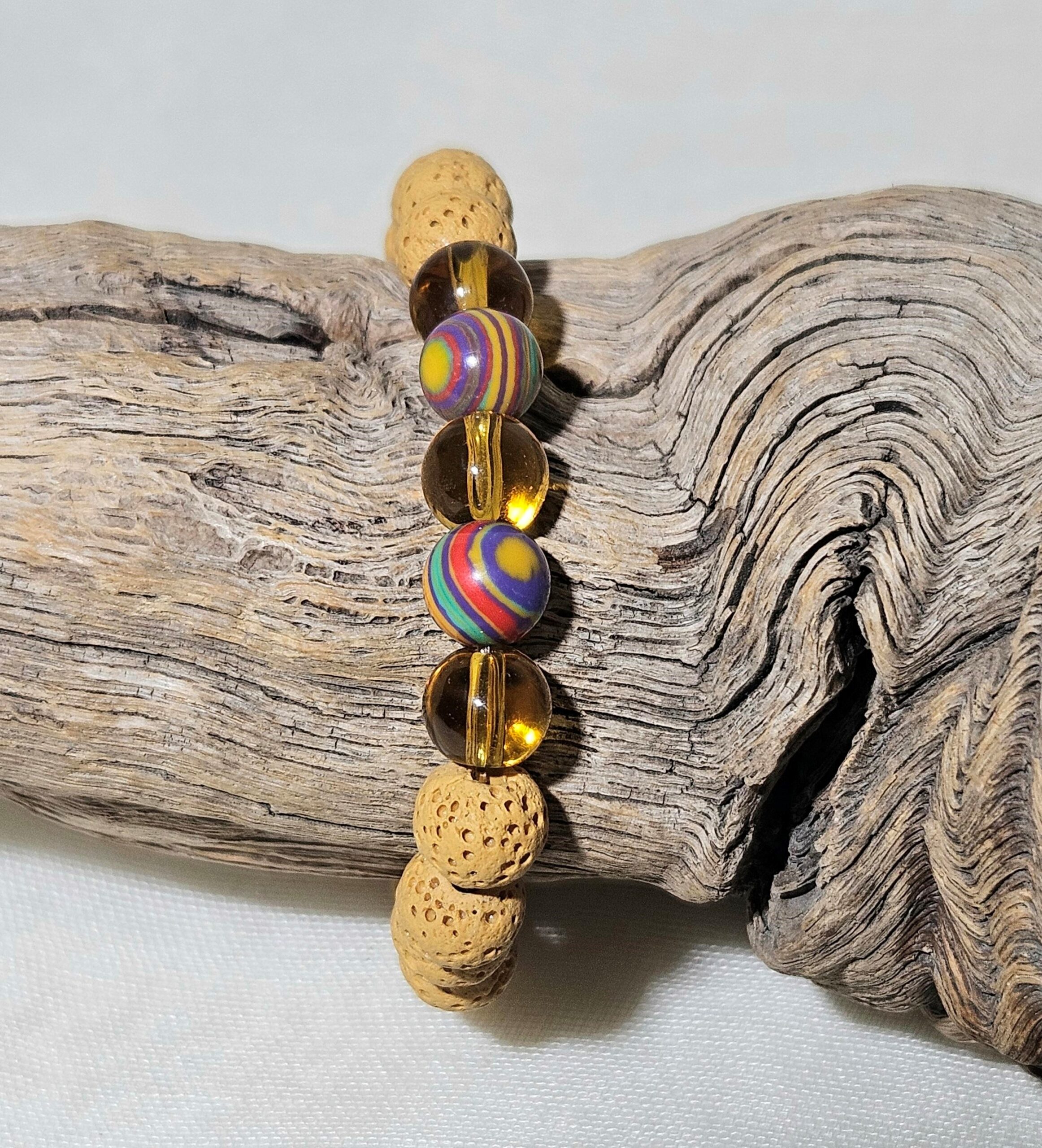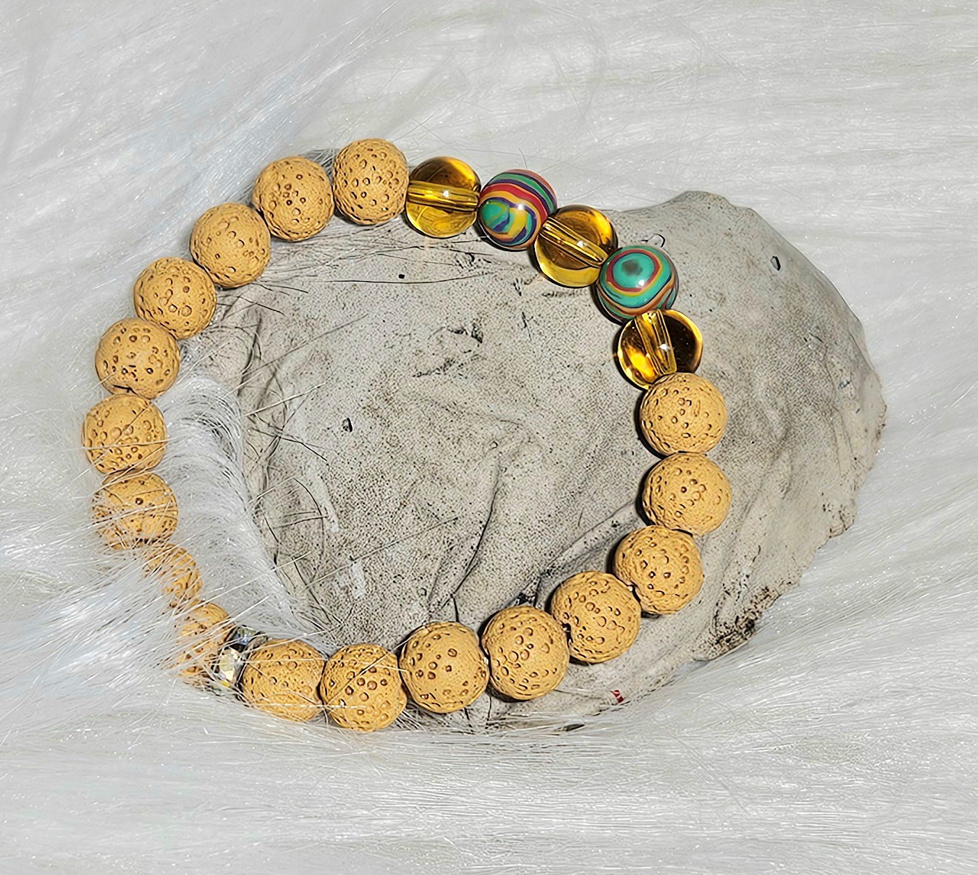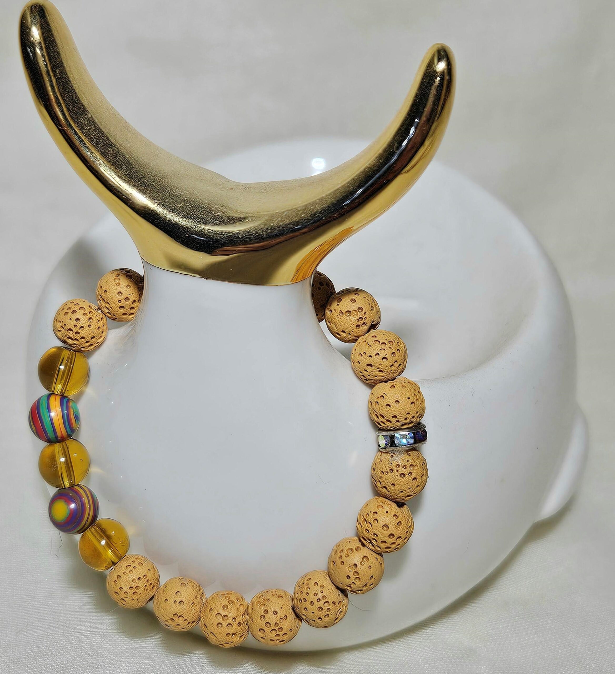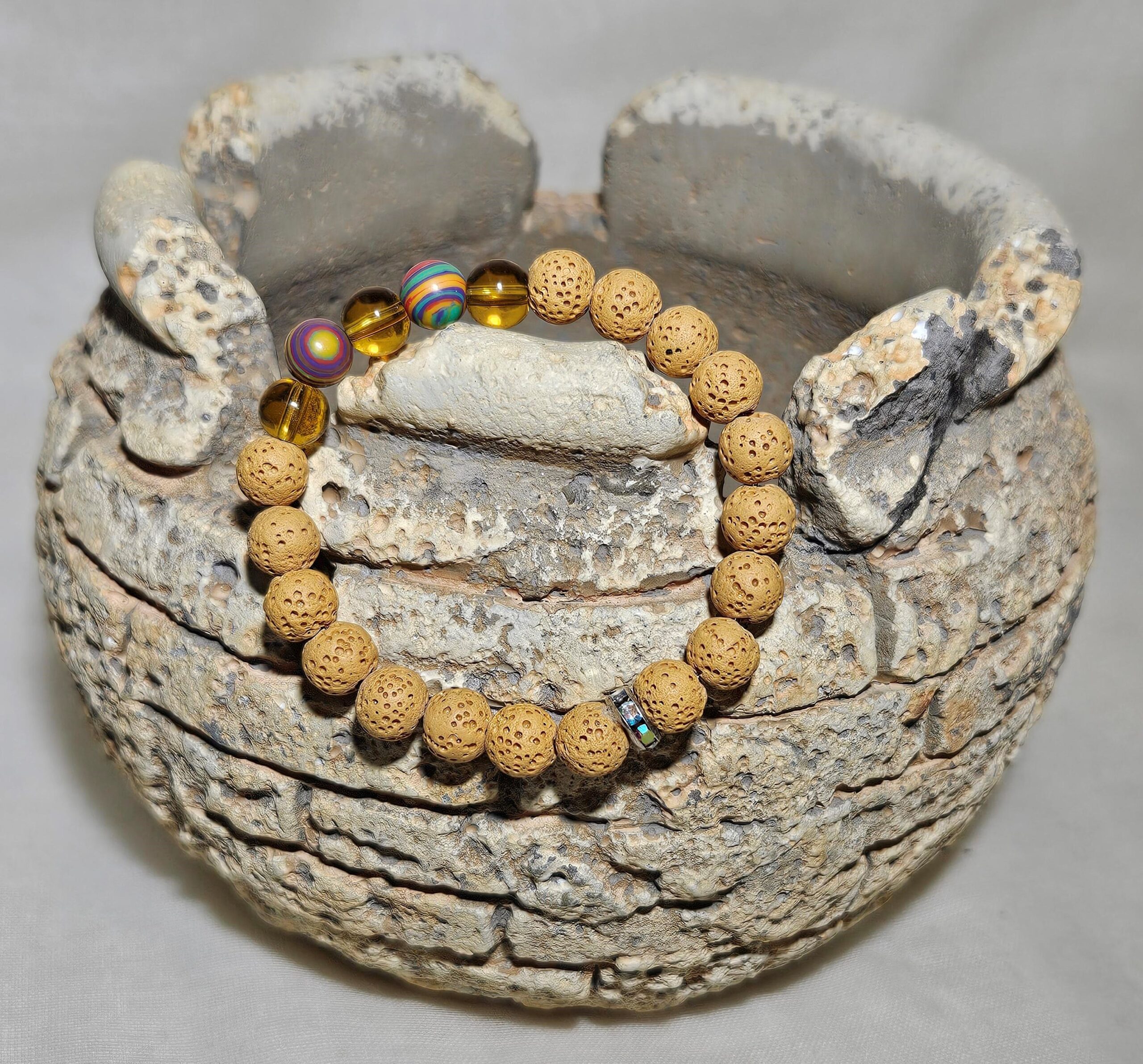 Material: 8 mm gelbe Lavastein mit Kristall Perlen