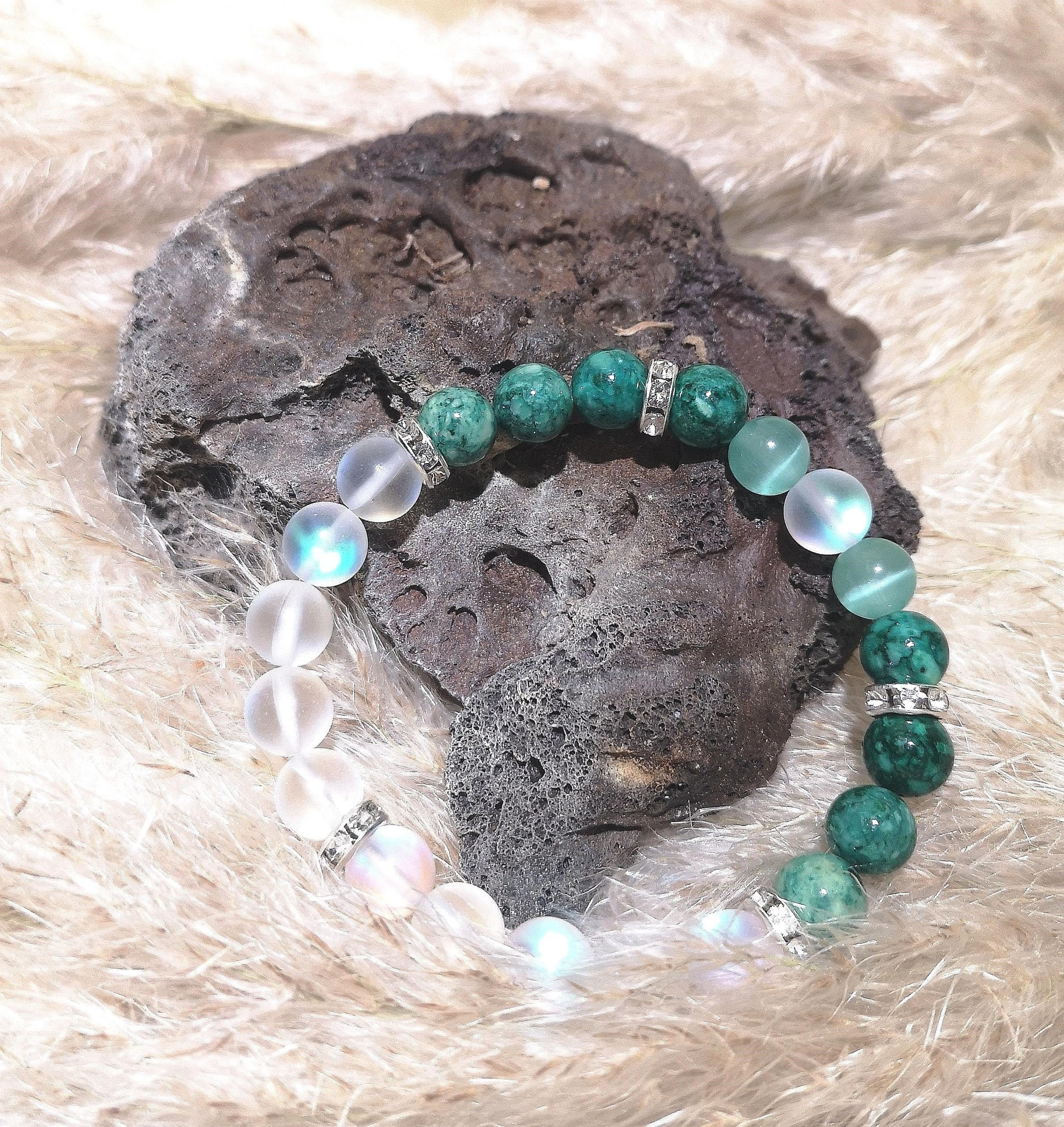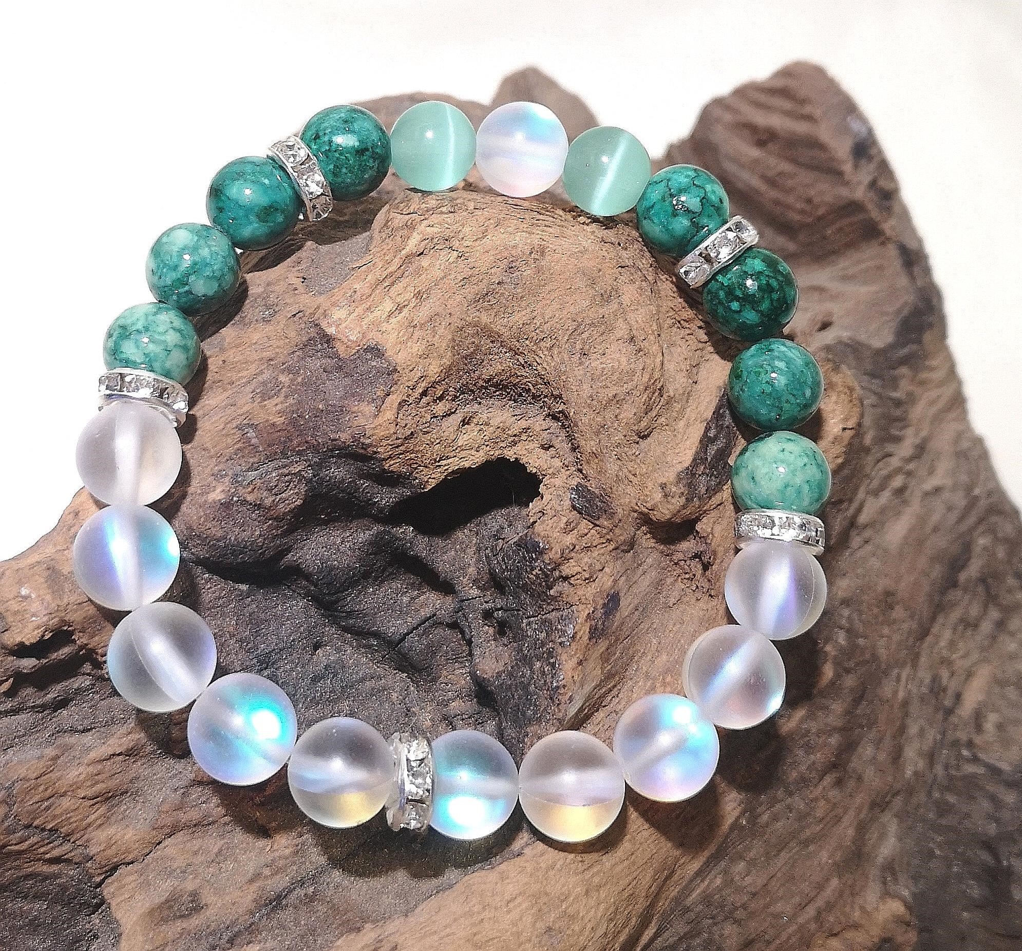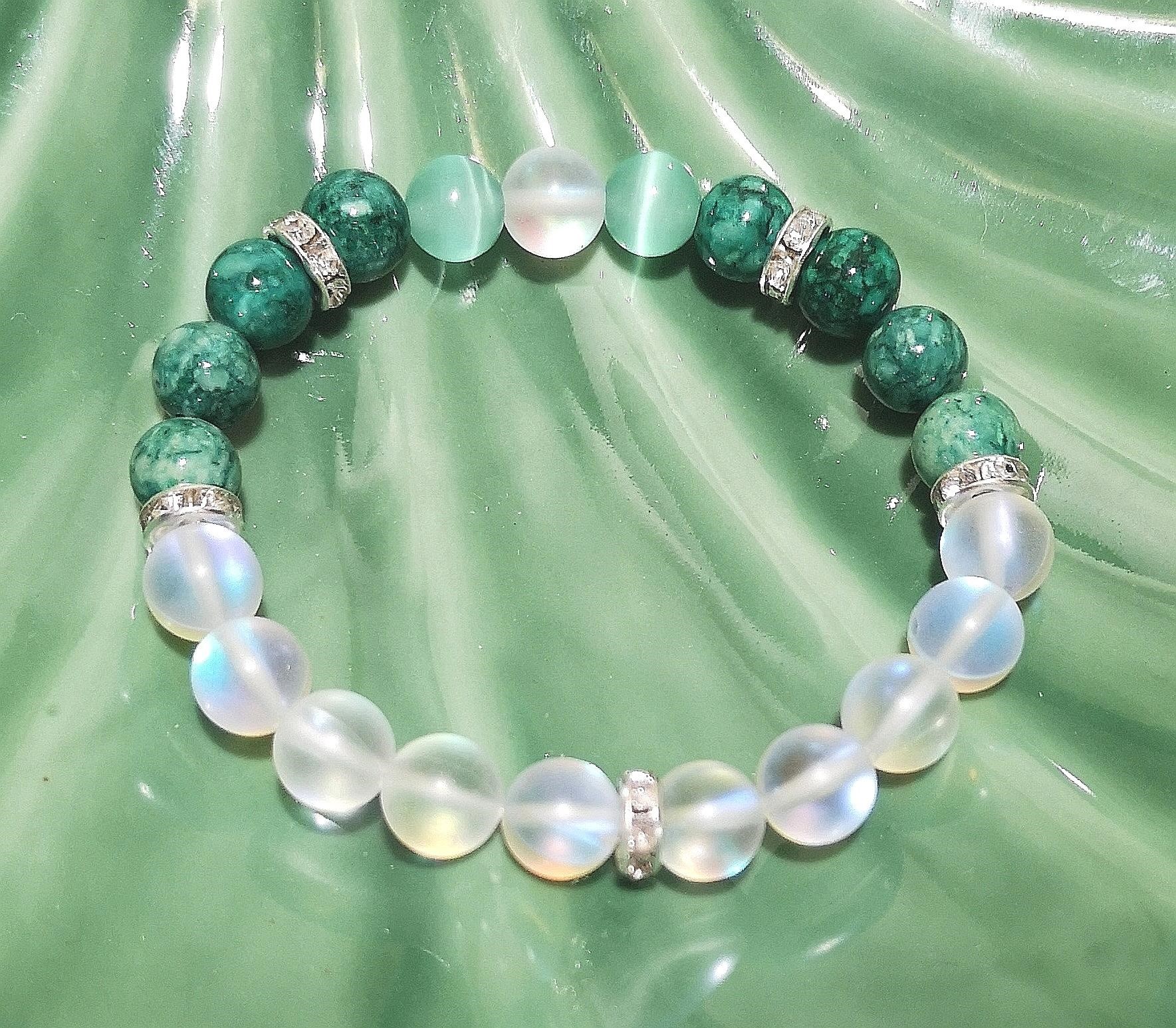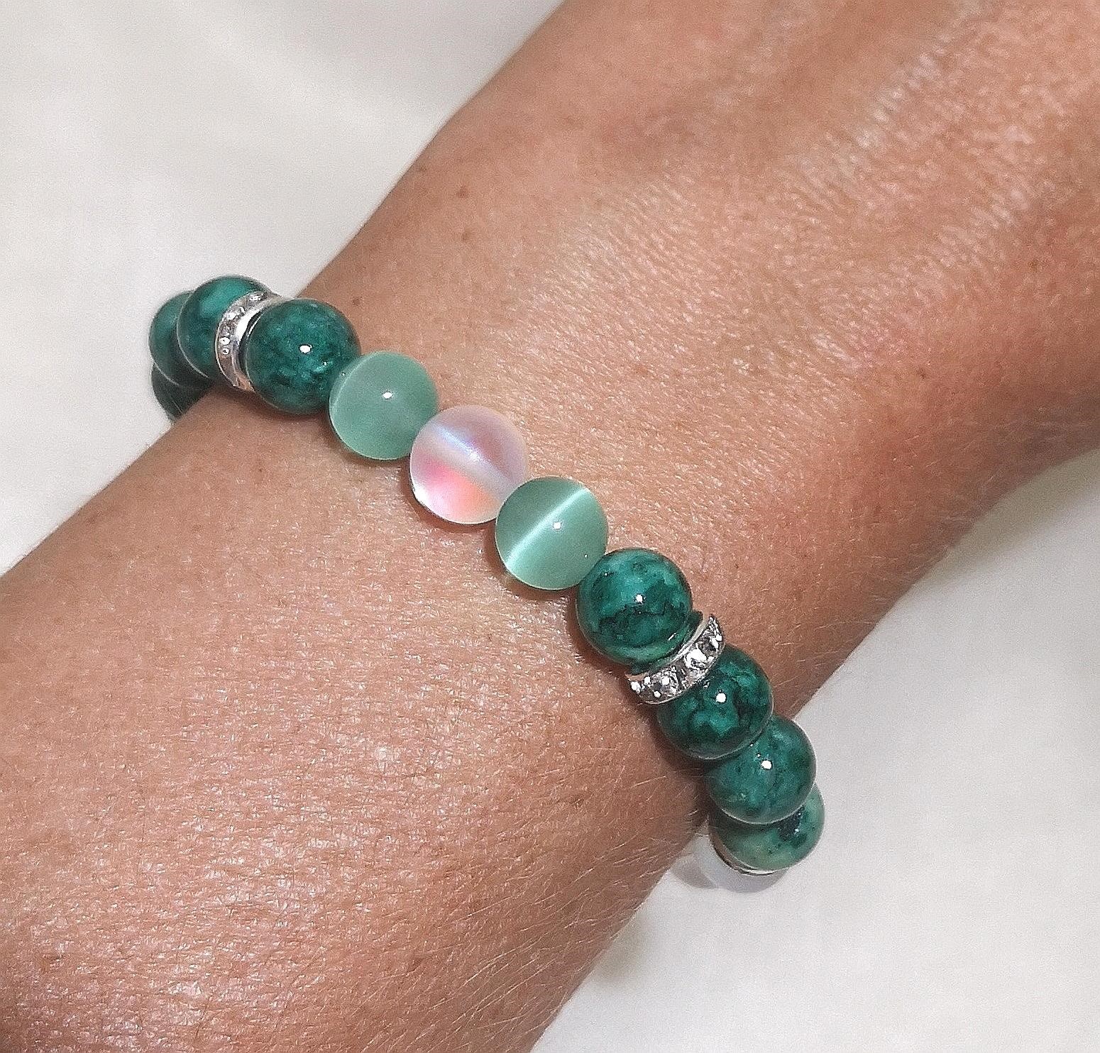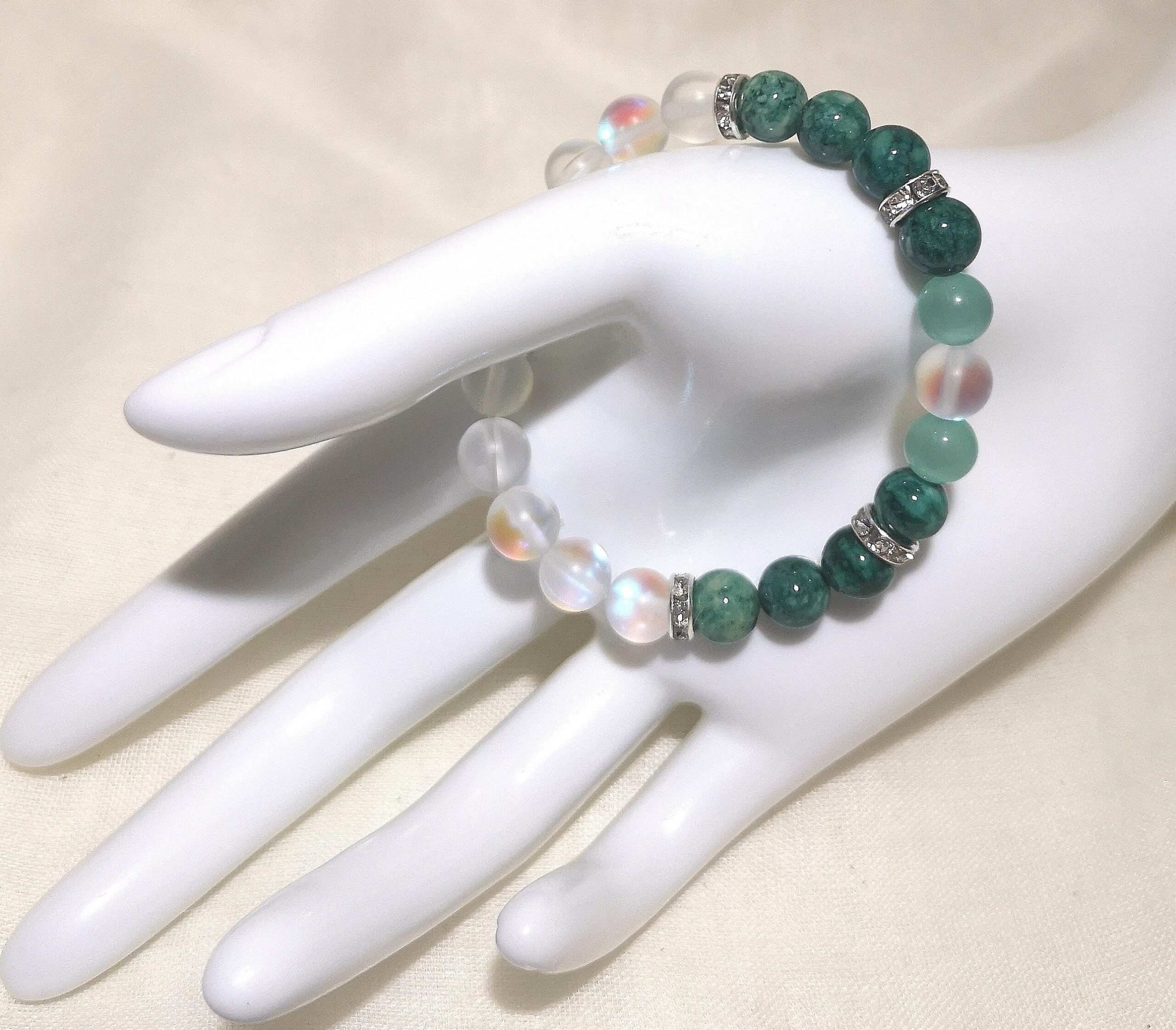 Material: 8 mm Kristall & grüne Stein Perlen mit Strass Rondellen