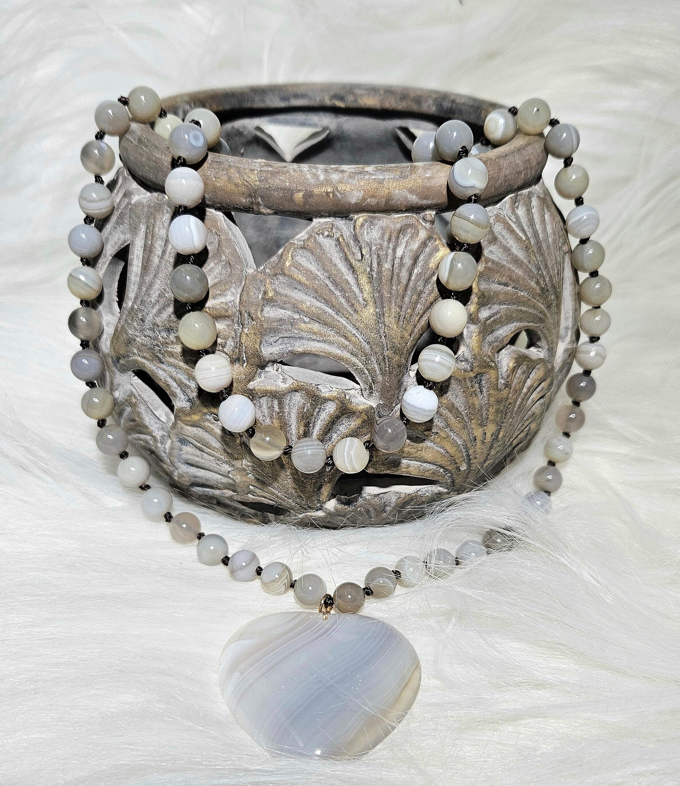 Lava-Hämatit Stein Buddha Kette