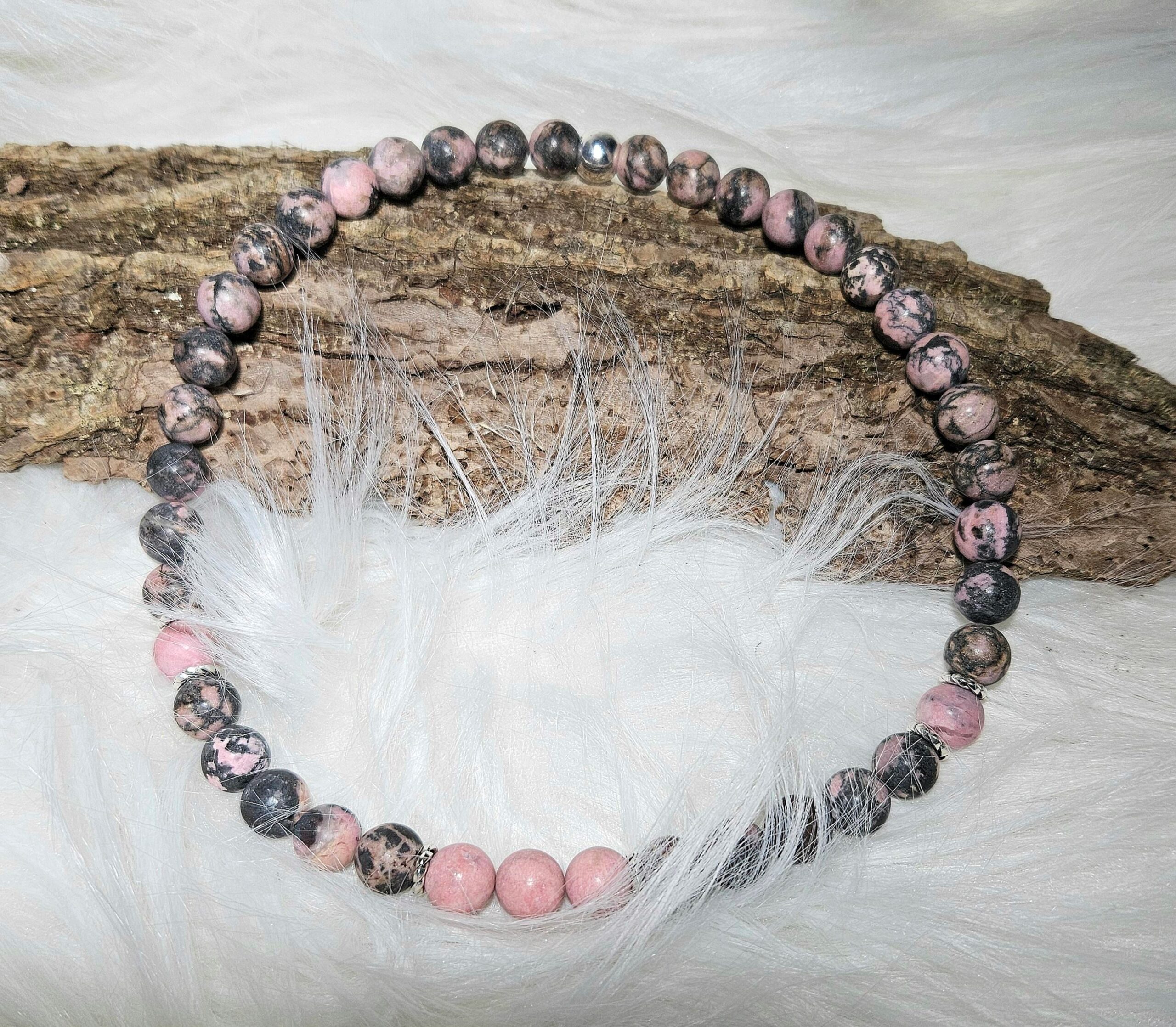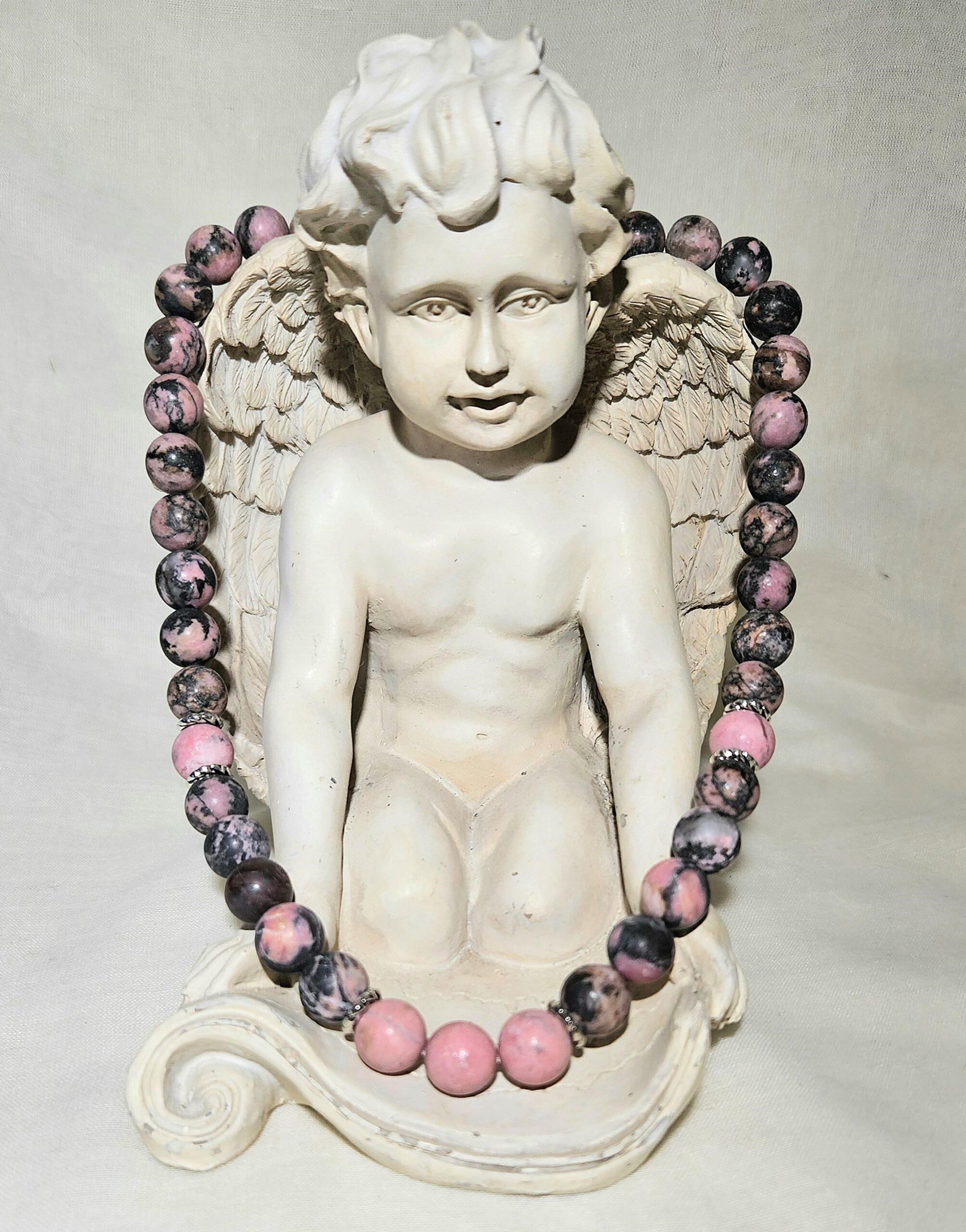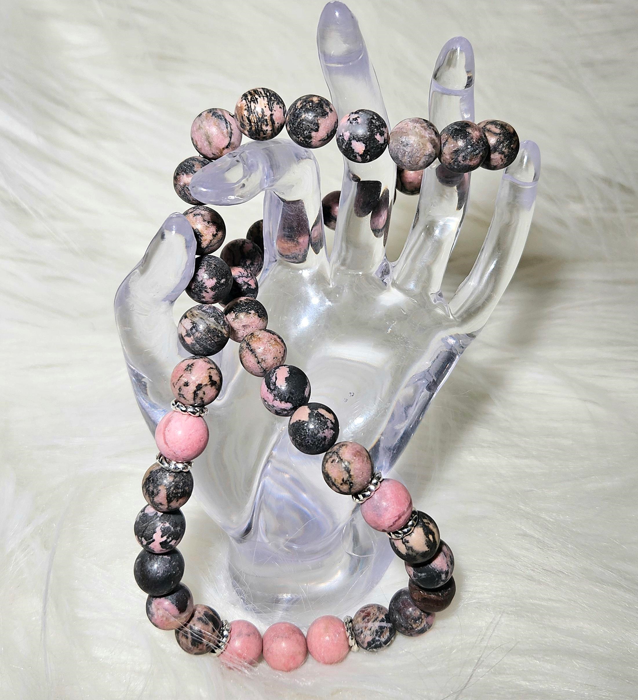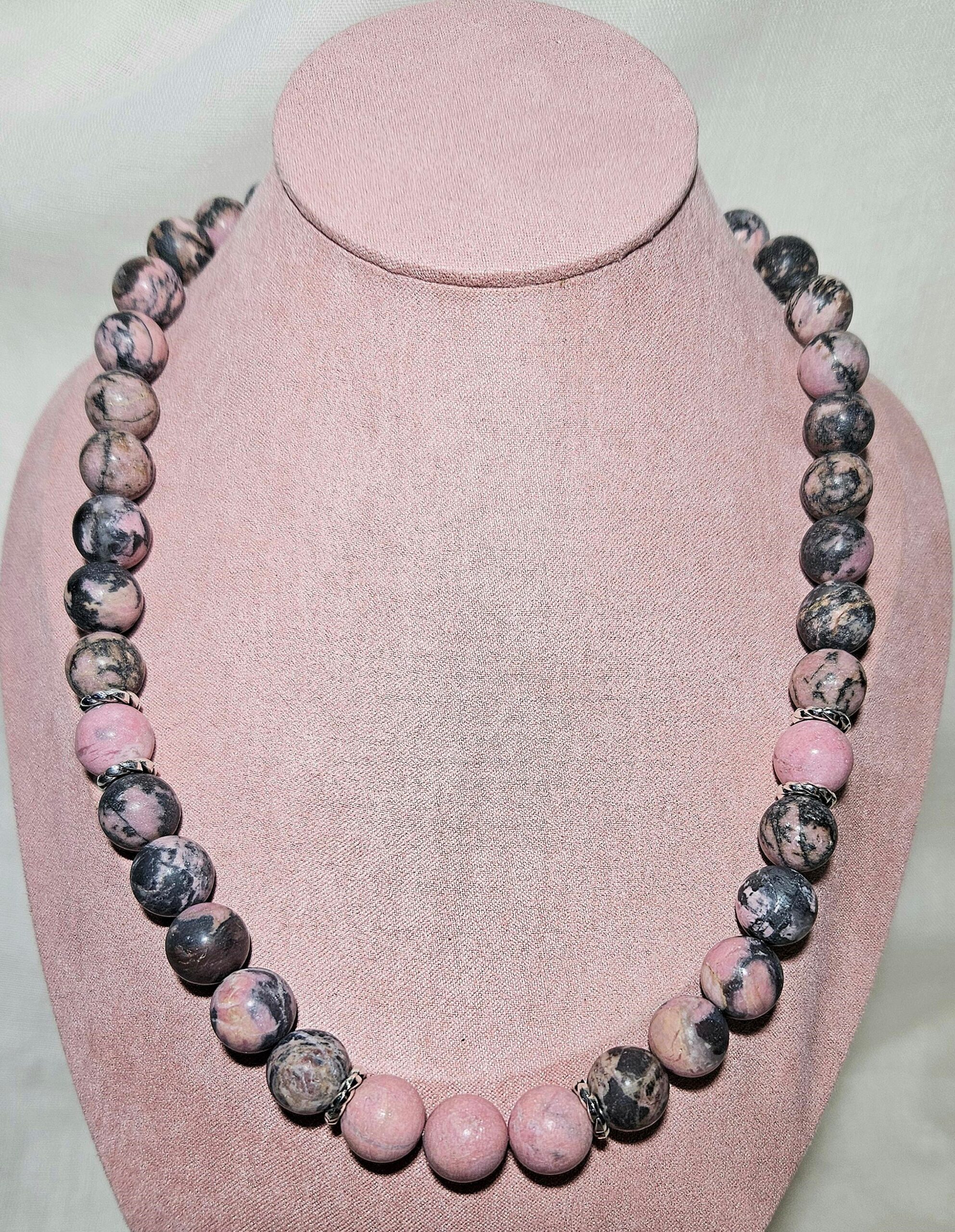 matte schwarze Rhodonit-Halsk.
