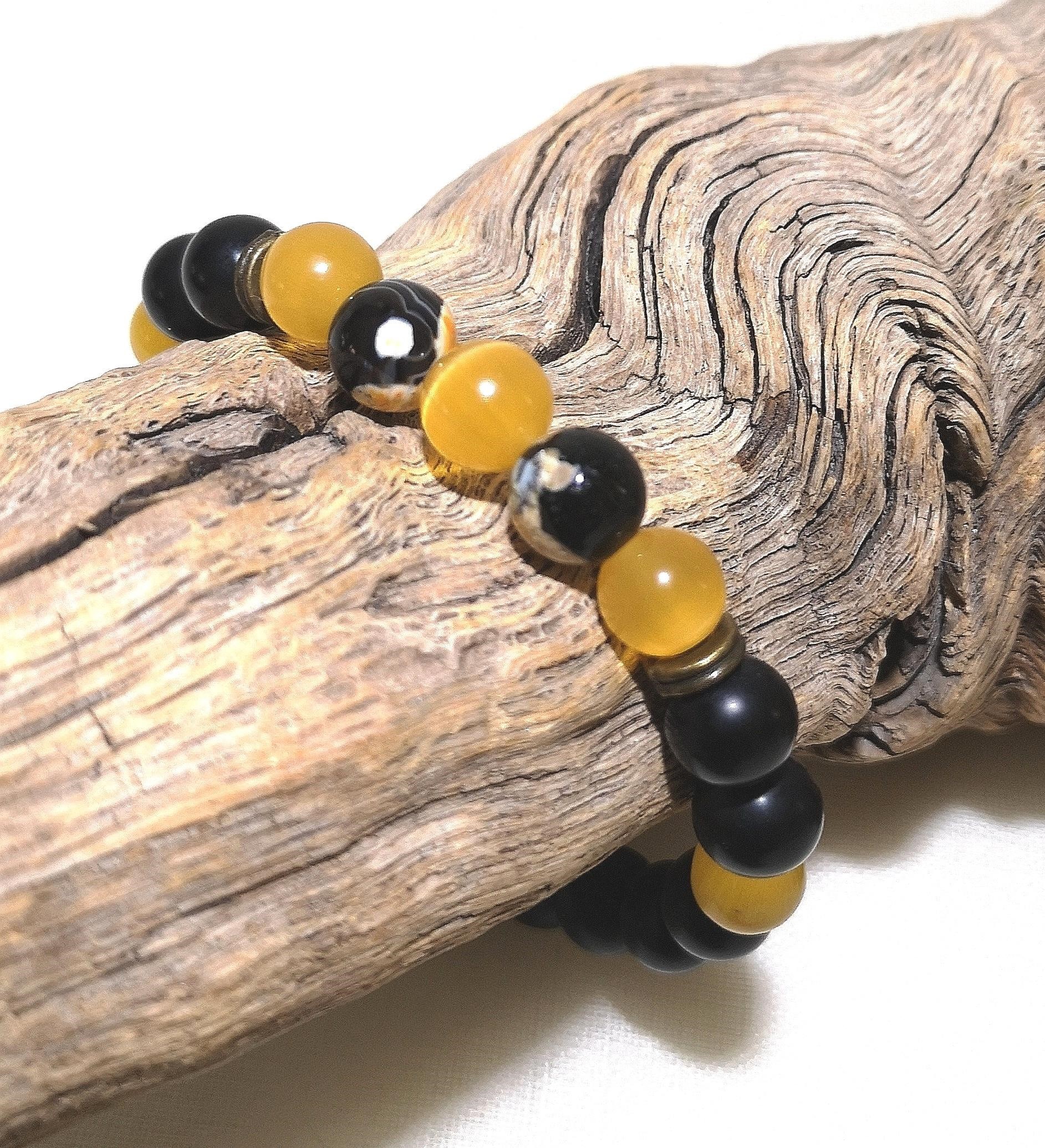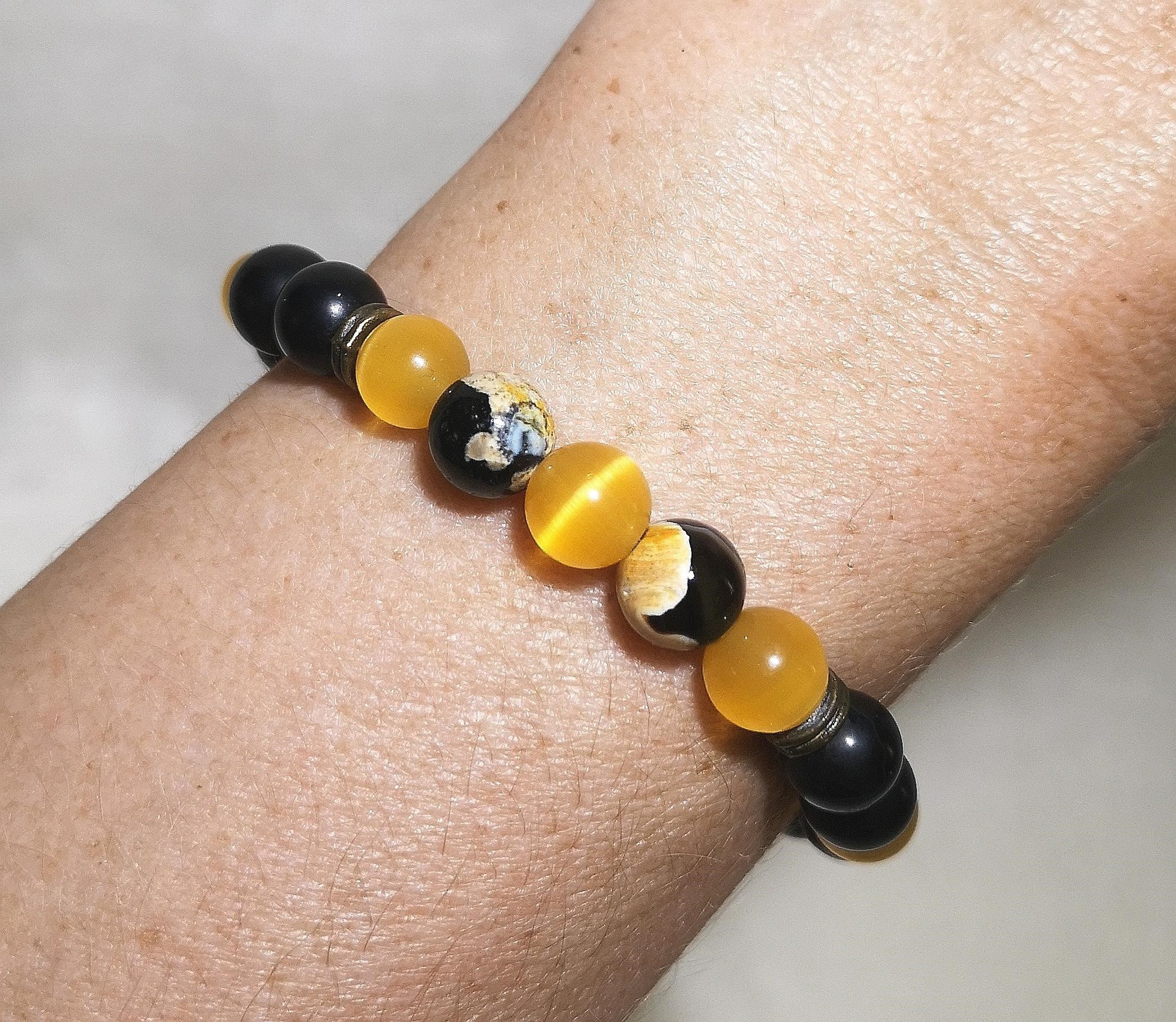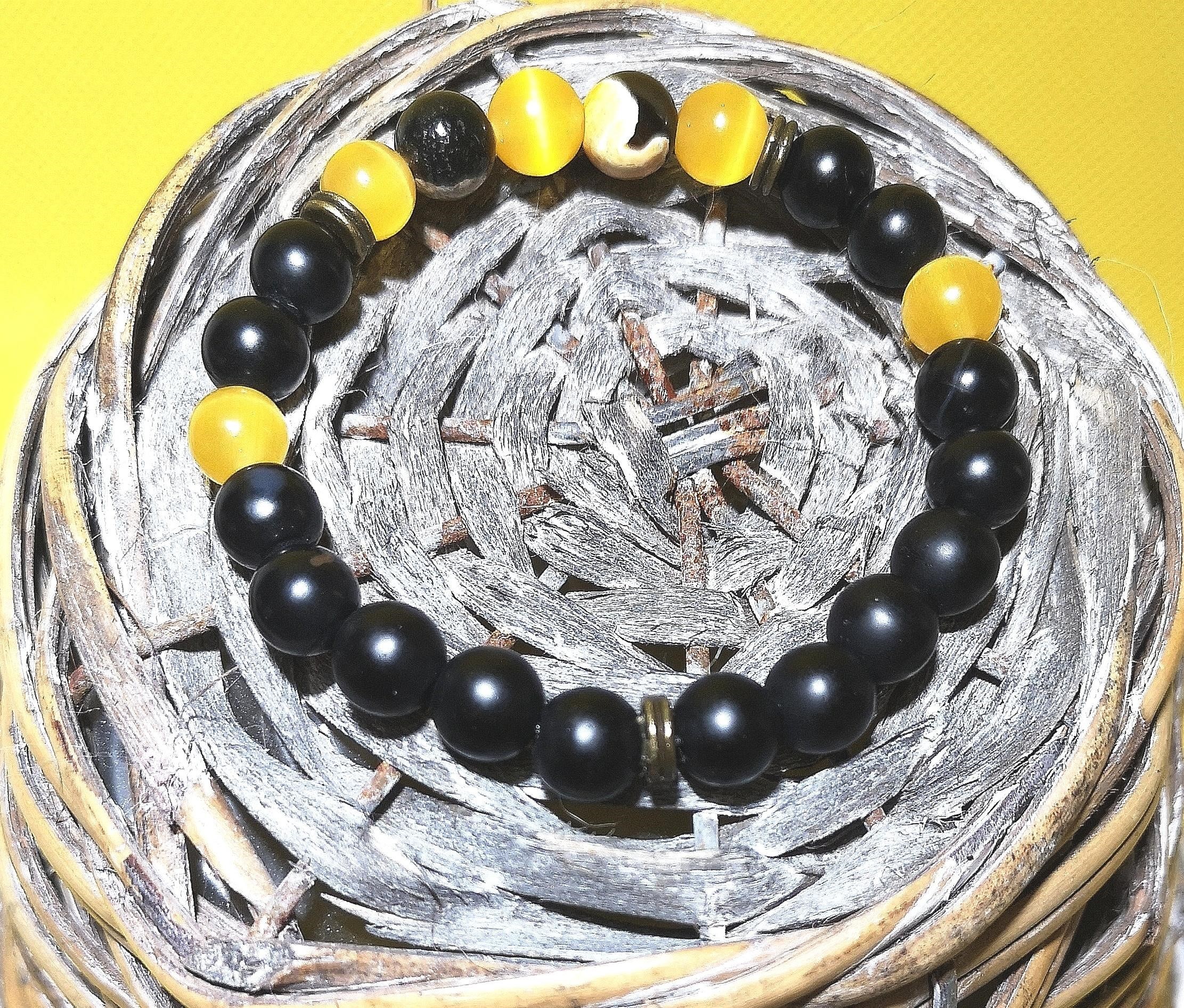Material: 8 mm Obsidian Stein mit gelben CatEye Perlen