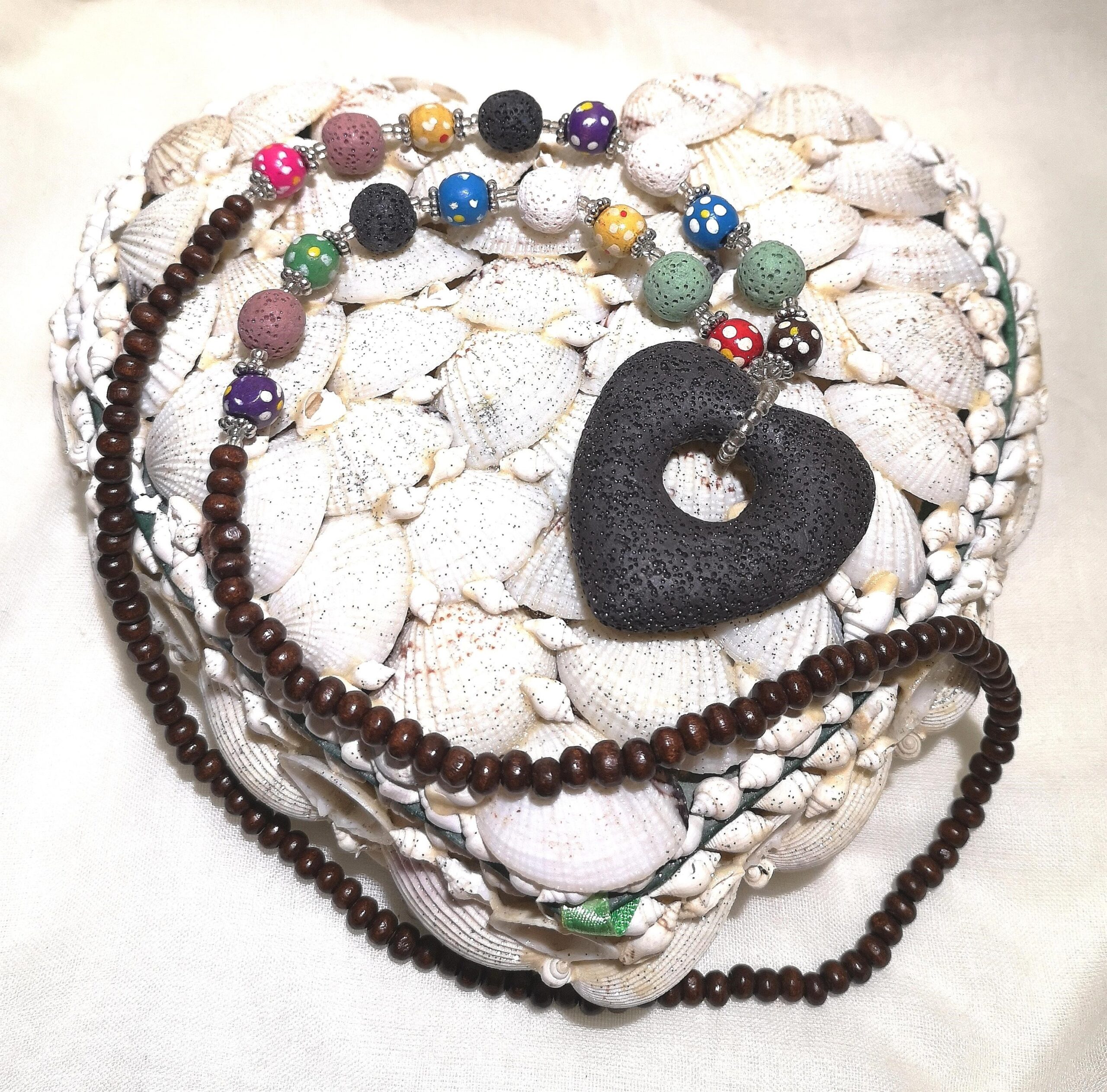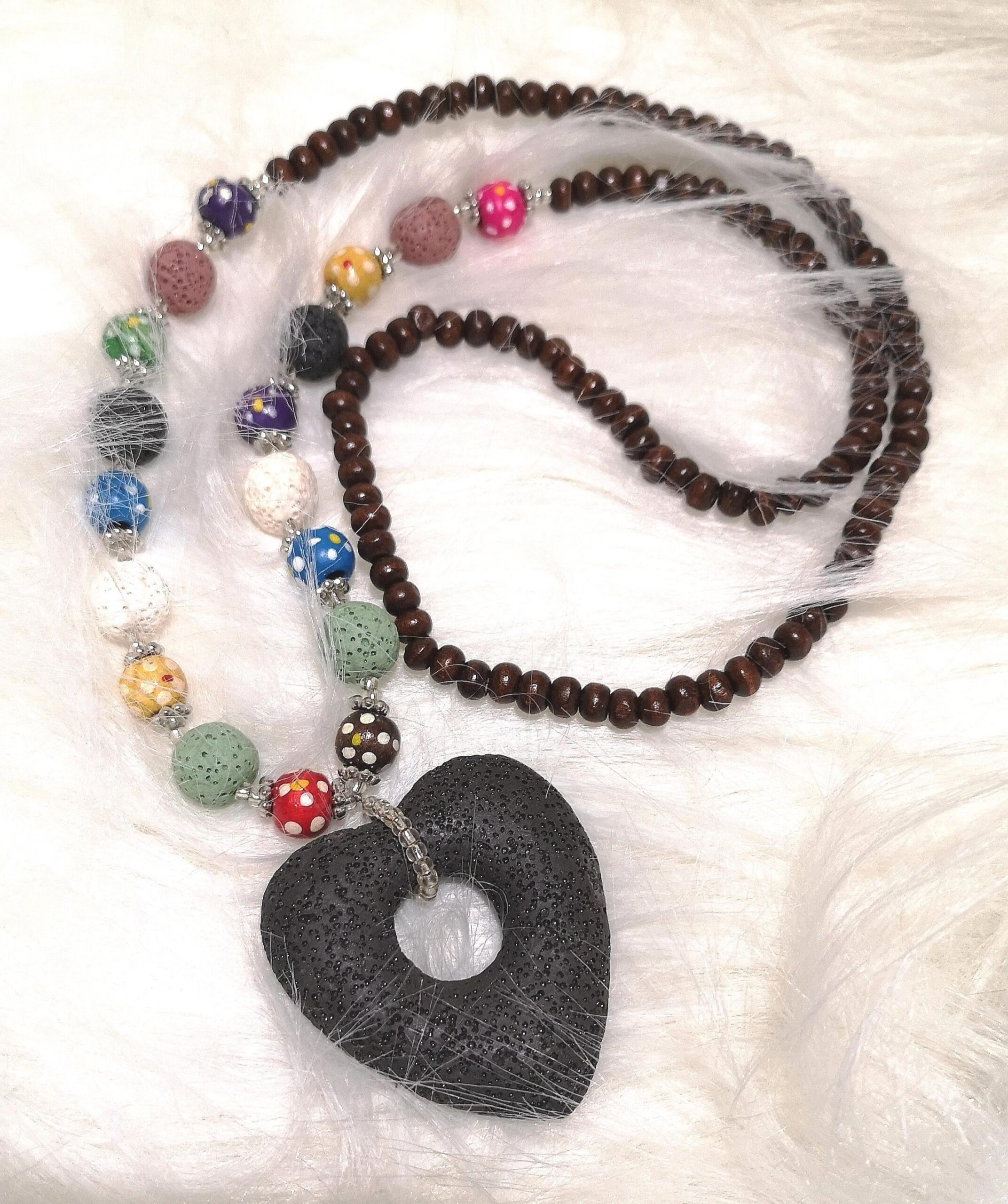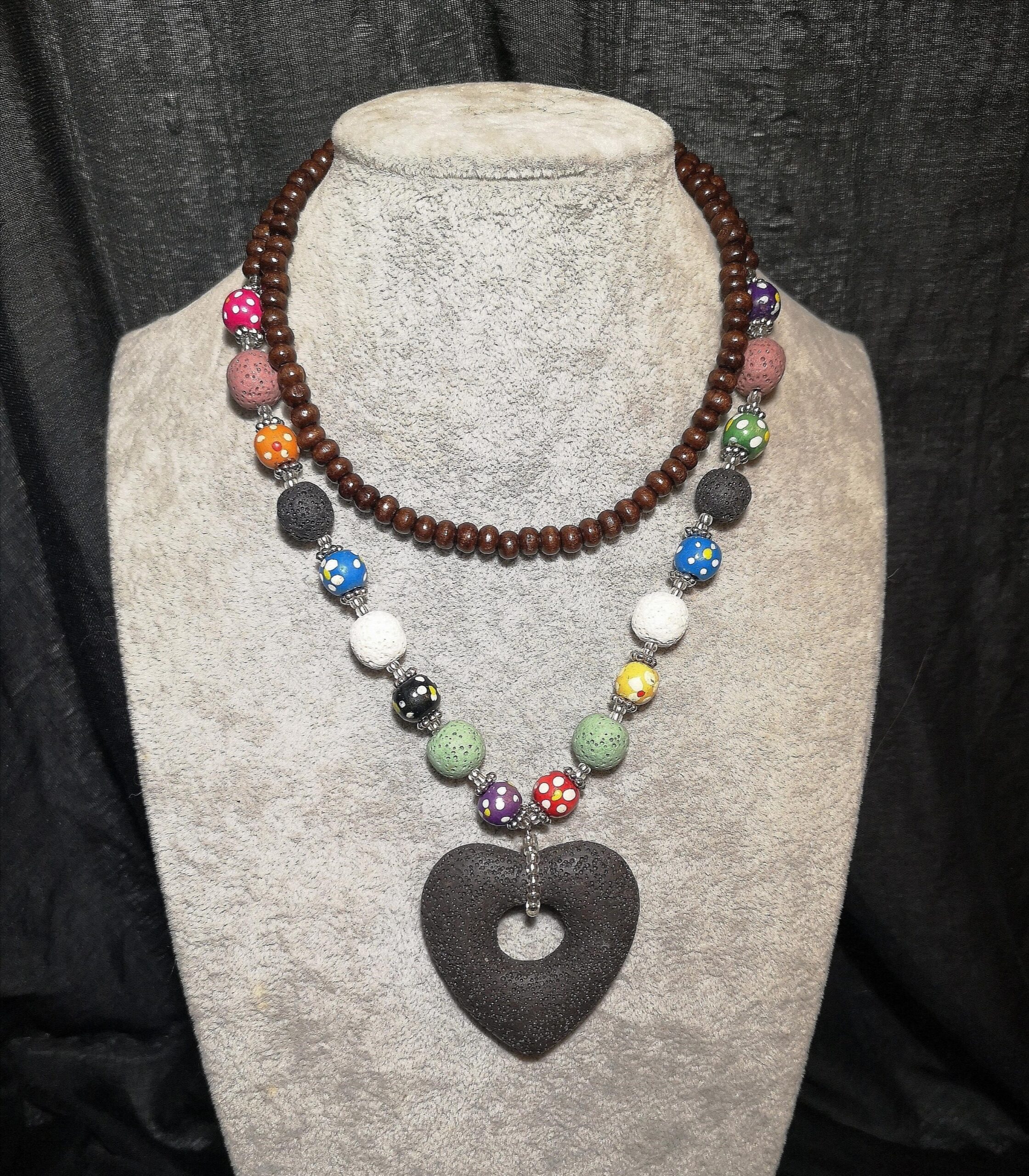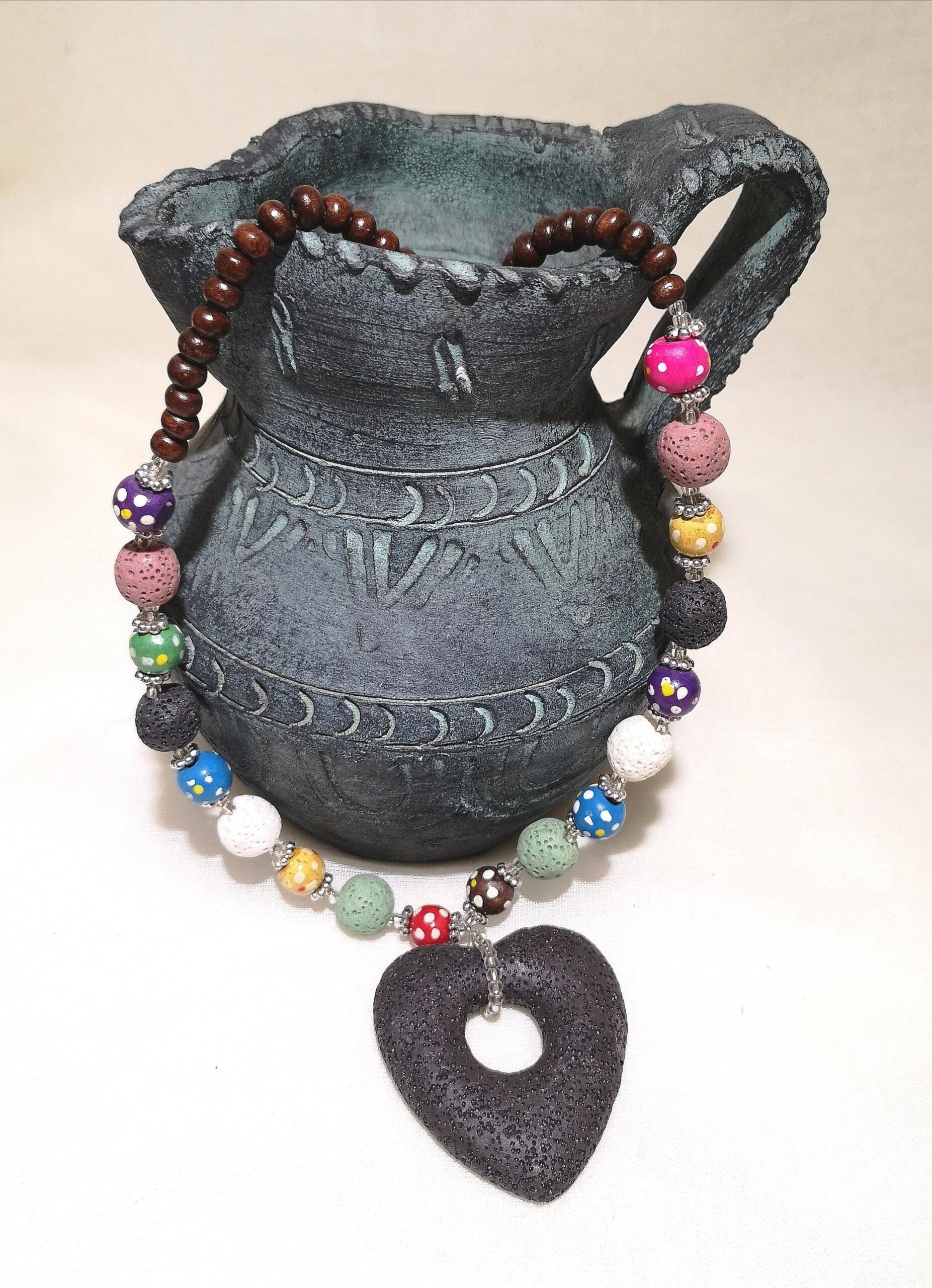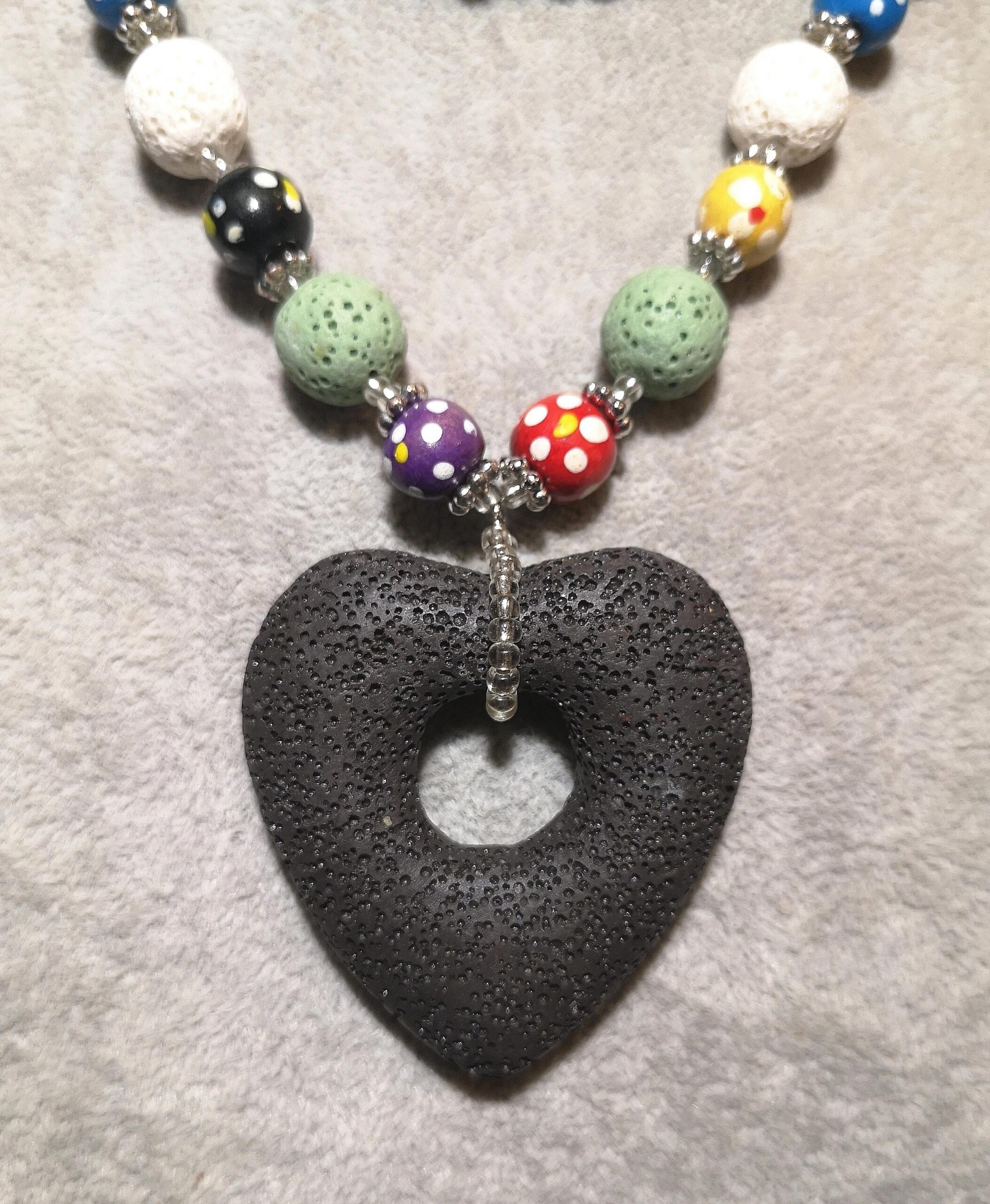 schwarze Kette mit Lavastein-Herz