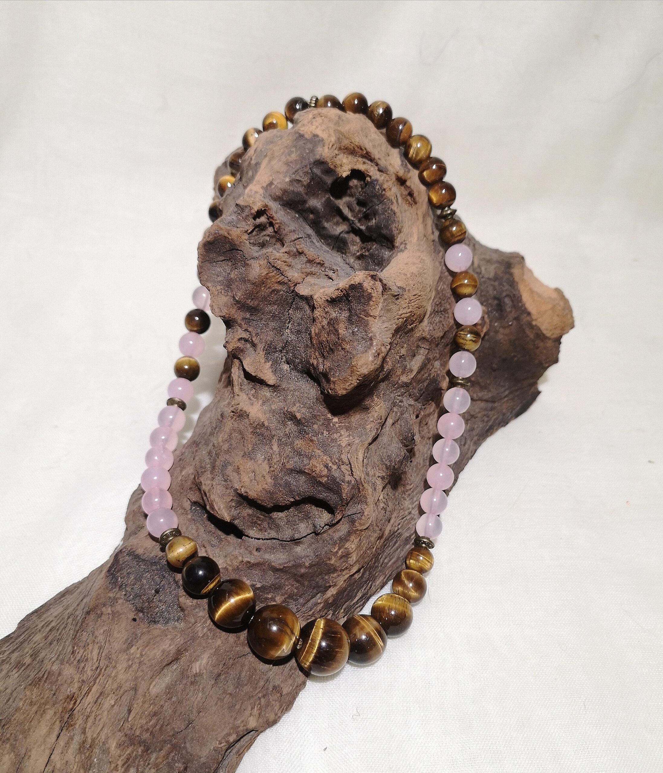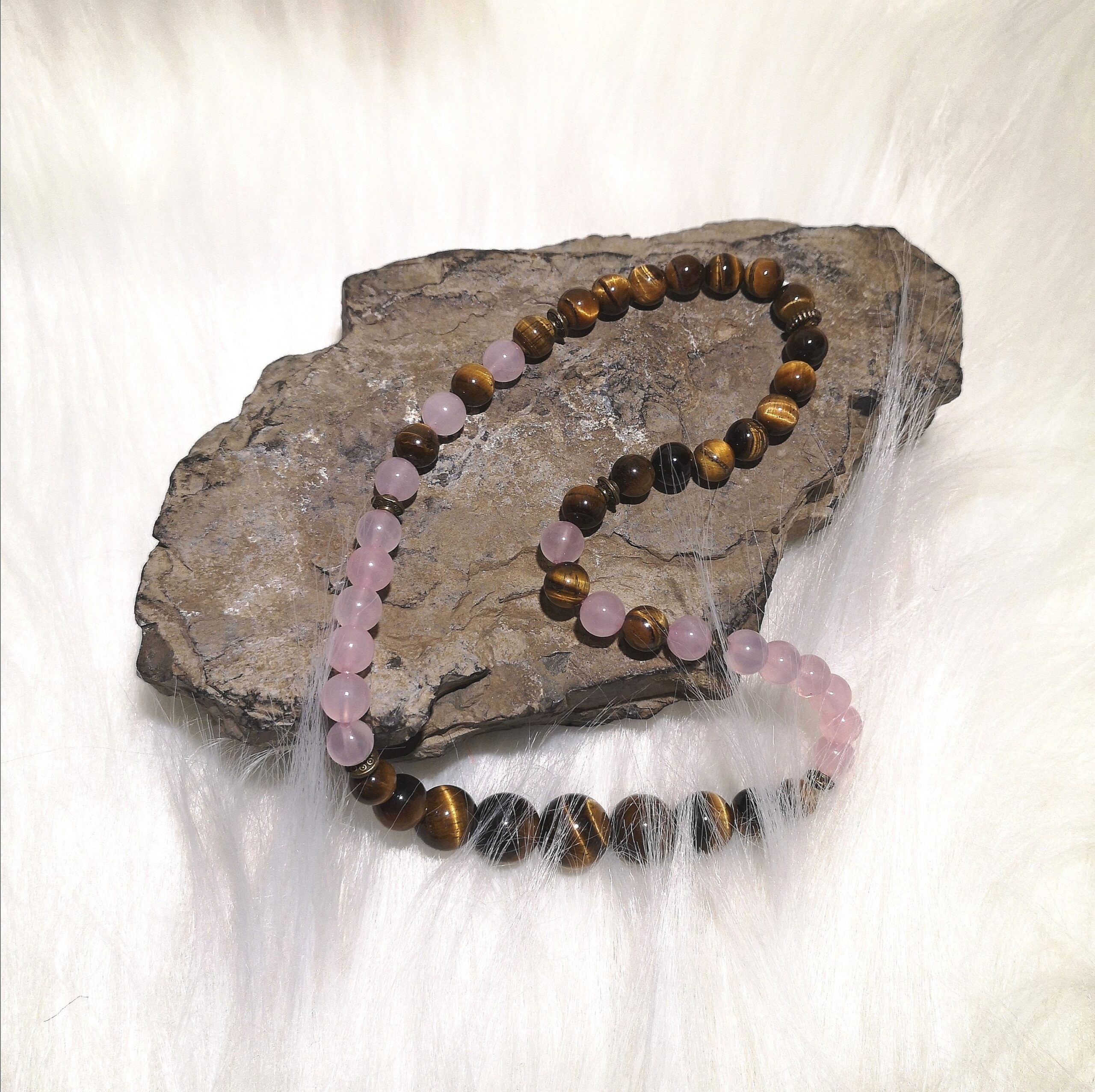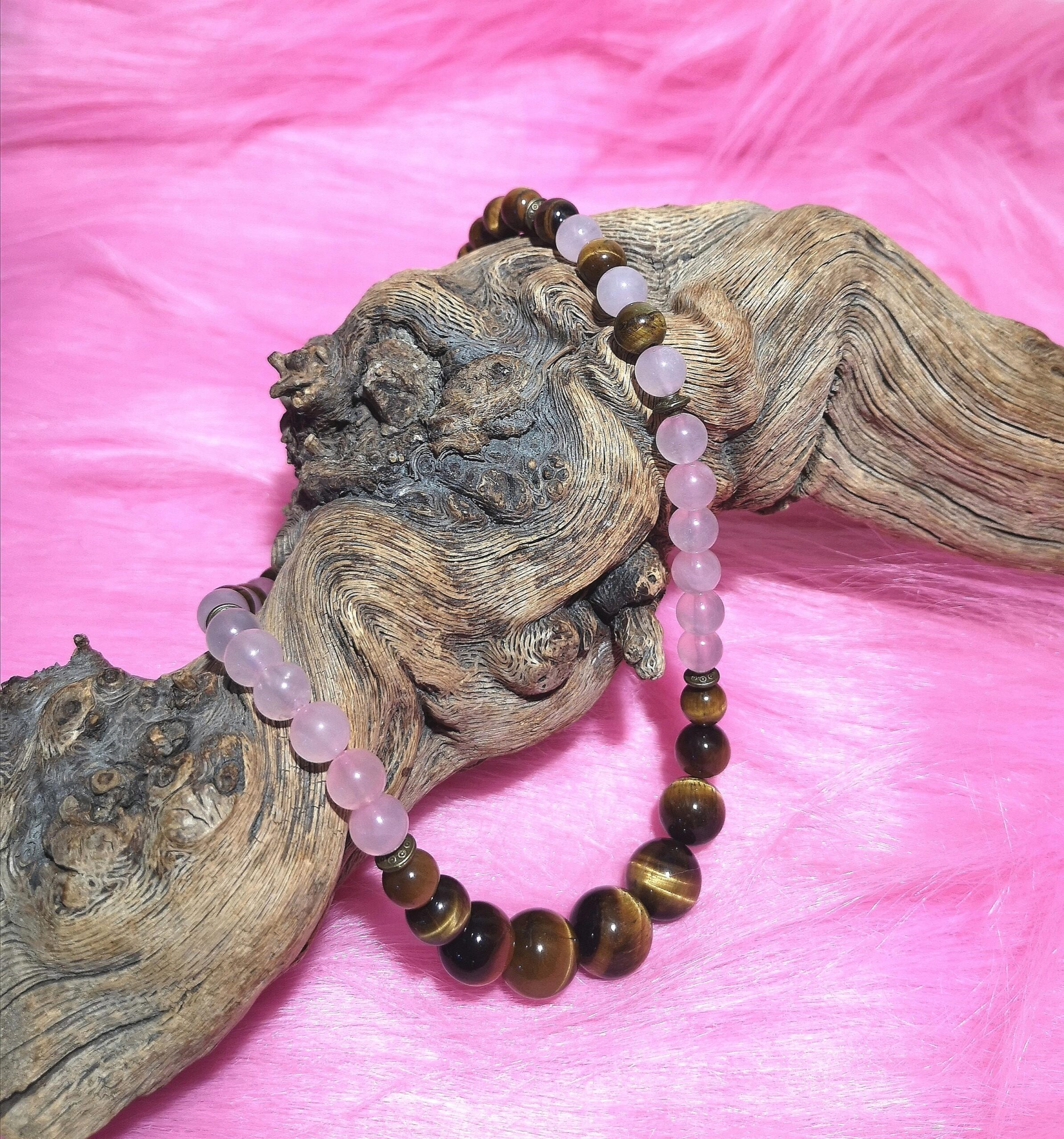 Material: 8 mm Tigerauge & Rosa Stein Perlen