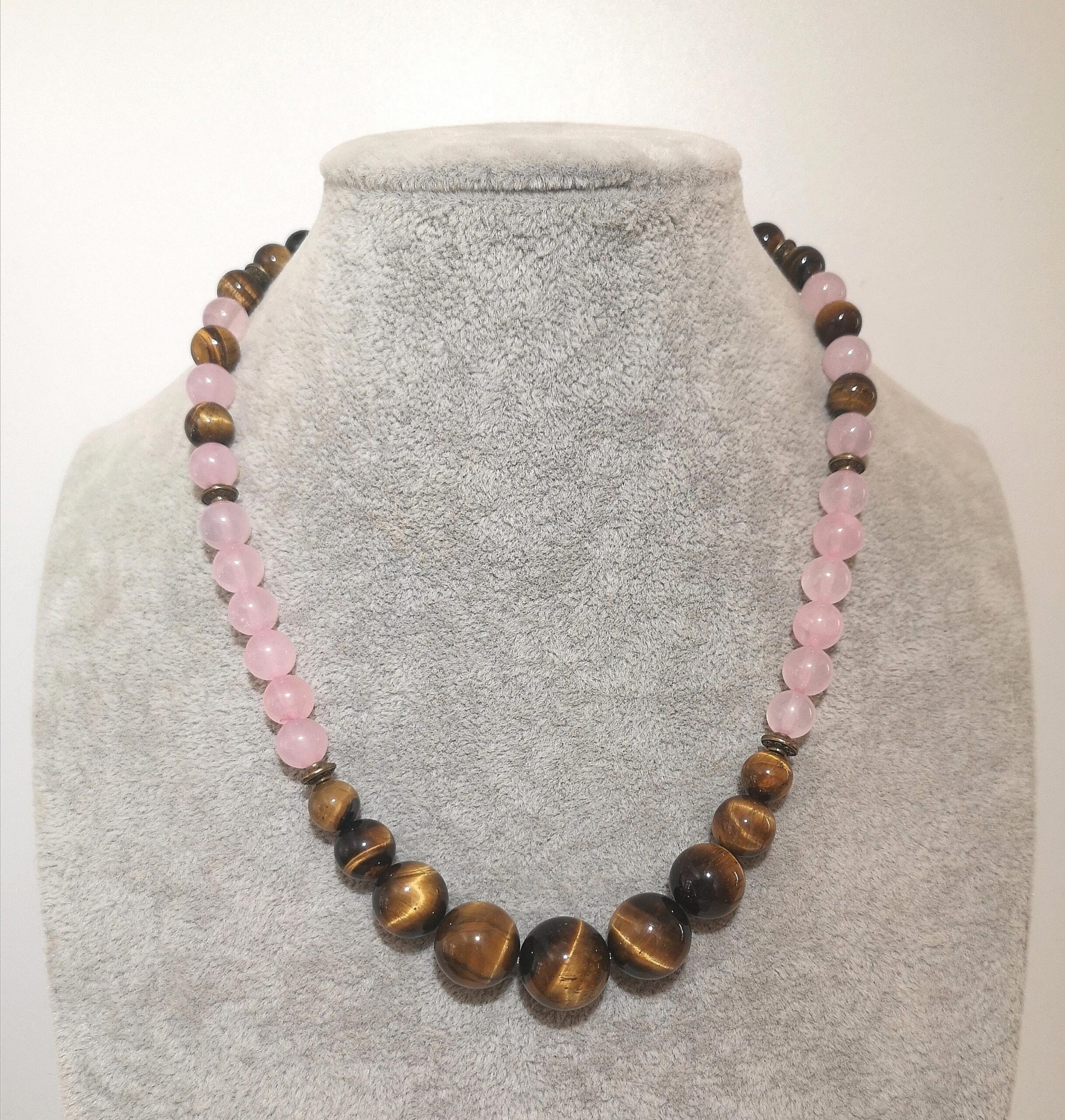 Tigerauge-Rosa Stein Kette