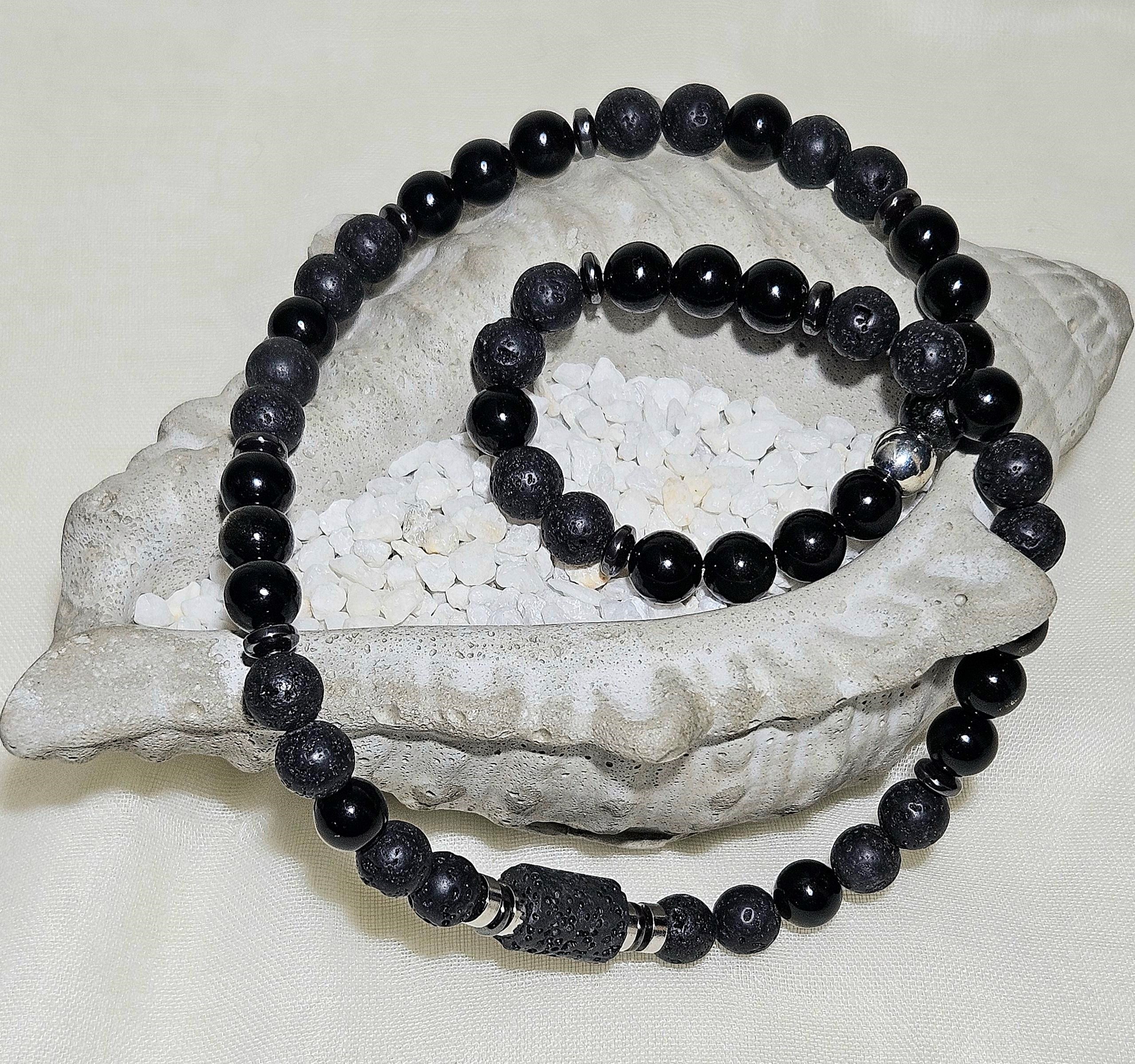Material: 8 mm Obsidian und Lava Steinperlen